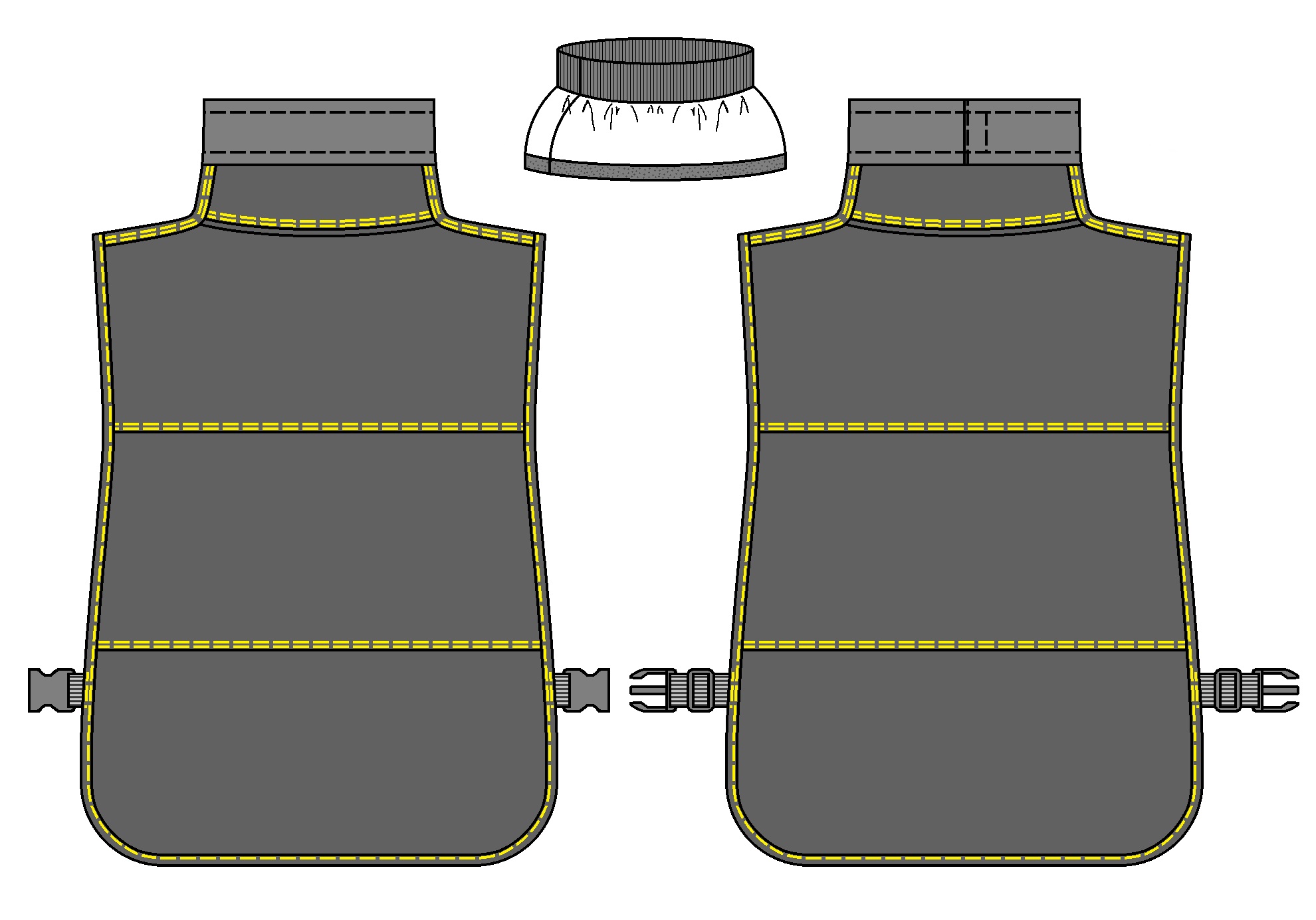 Боковые и нижние срезы фартука окантованы стропой.