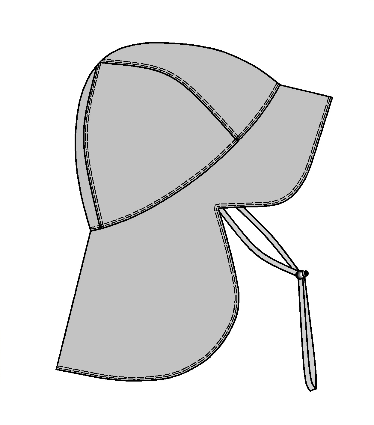 Поля двойные фигурной формы образуют козырек и пелерину.
