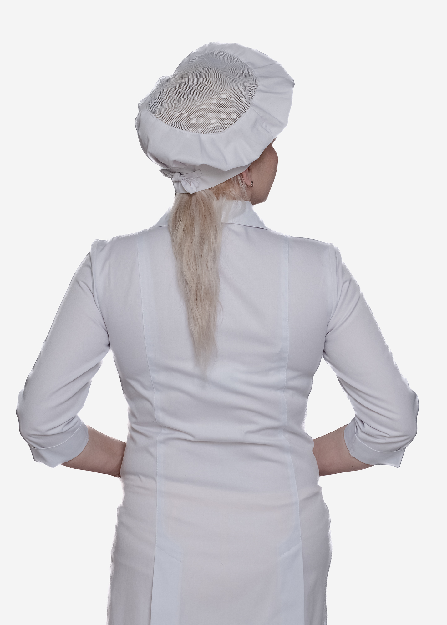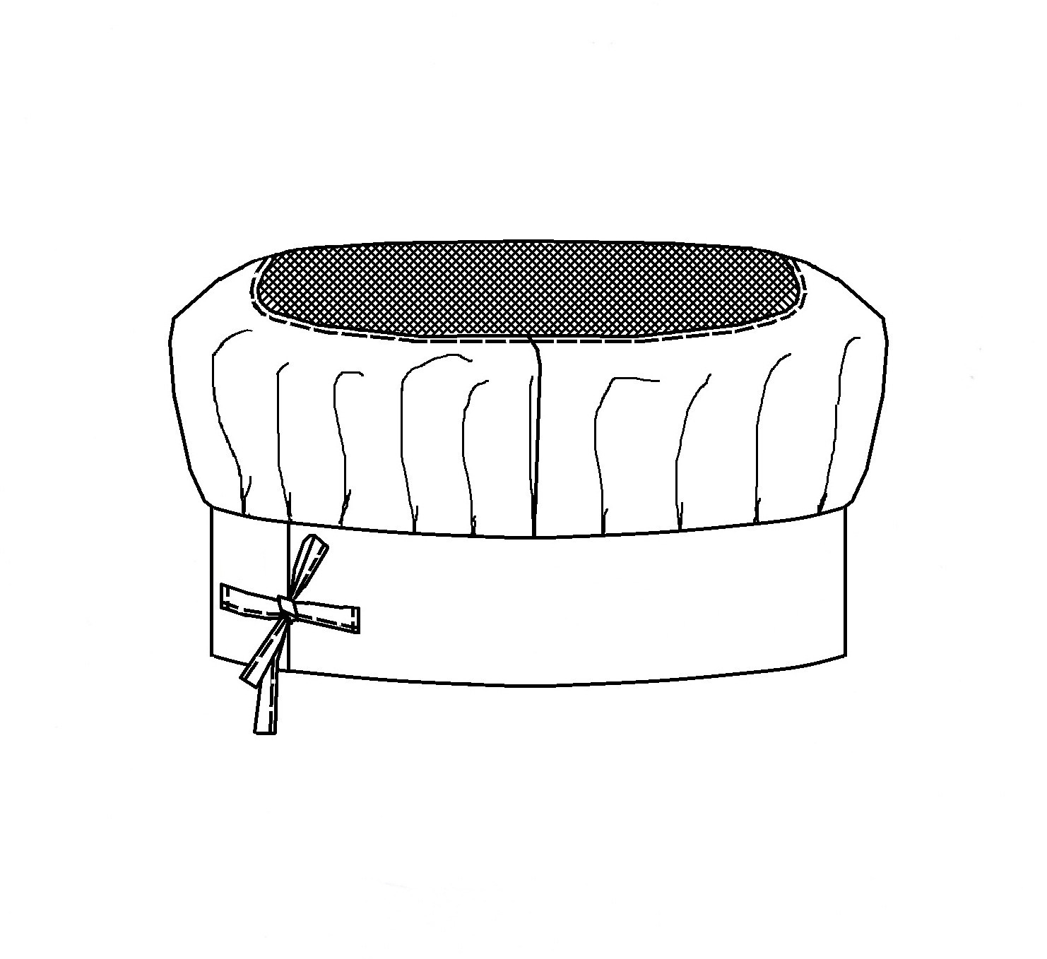 Состоит из стенки и донышка со вставкой из сетки по верхней части, по шву притачивания донышка к стенке заложены односторонние складки. Колпак регулируется по обхвату головы завязками на задней части.