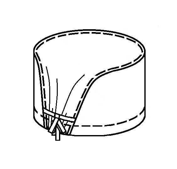Состоит из стенки и донышка, регулируется по обхвату головы завязками на задней части. Детали изделия соединены запошивочным швом.