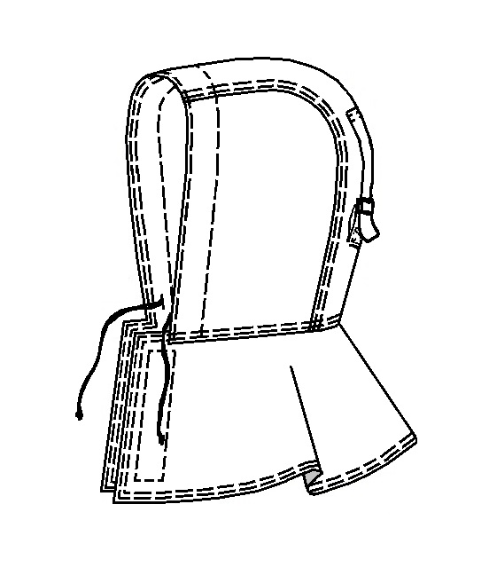 Состоит из головки и пелерины, по лицевому вырезу стягивается хлопчатобумажной тесьмой.