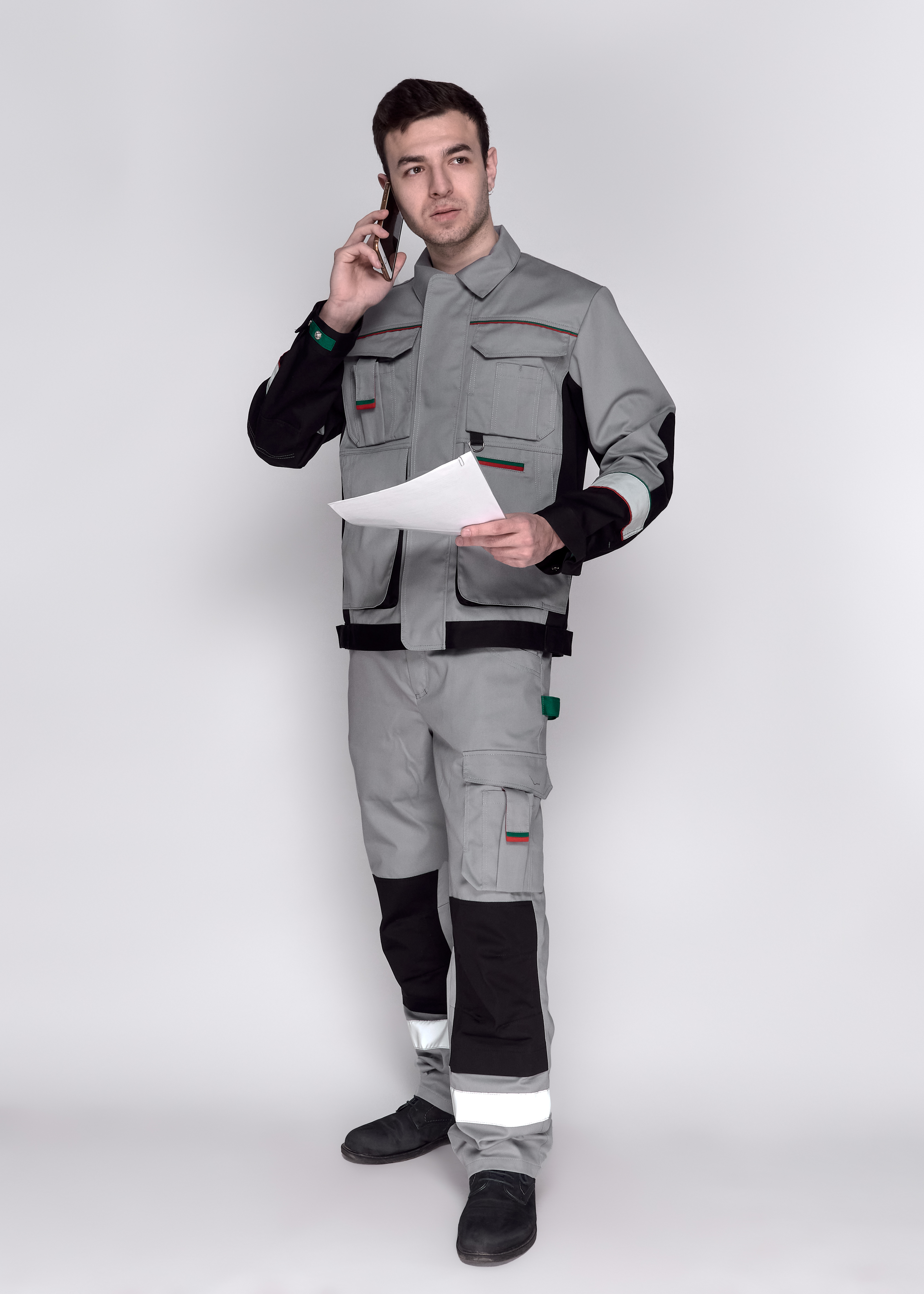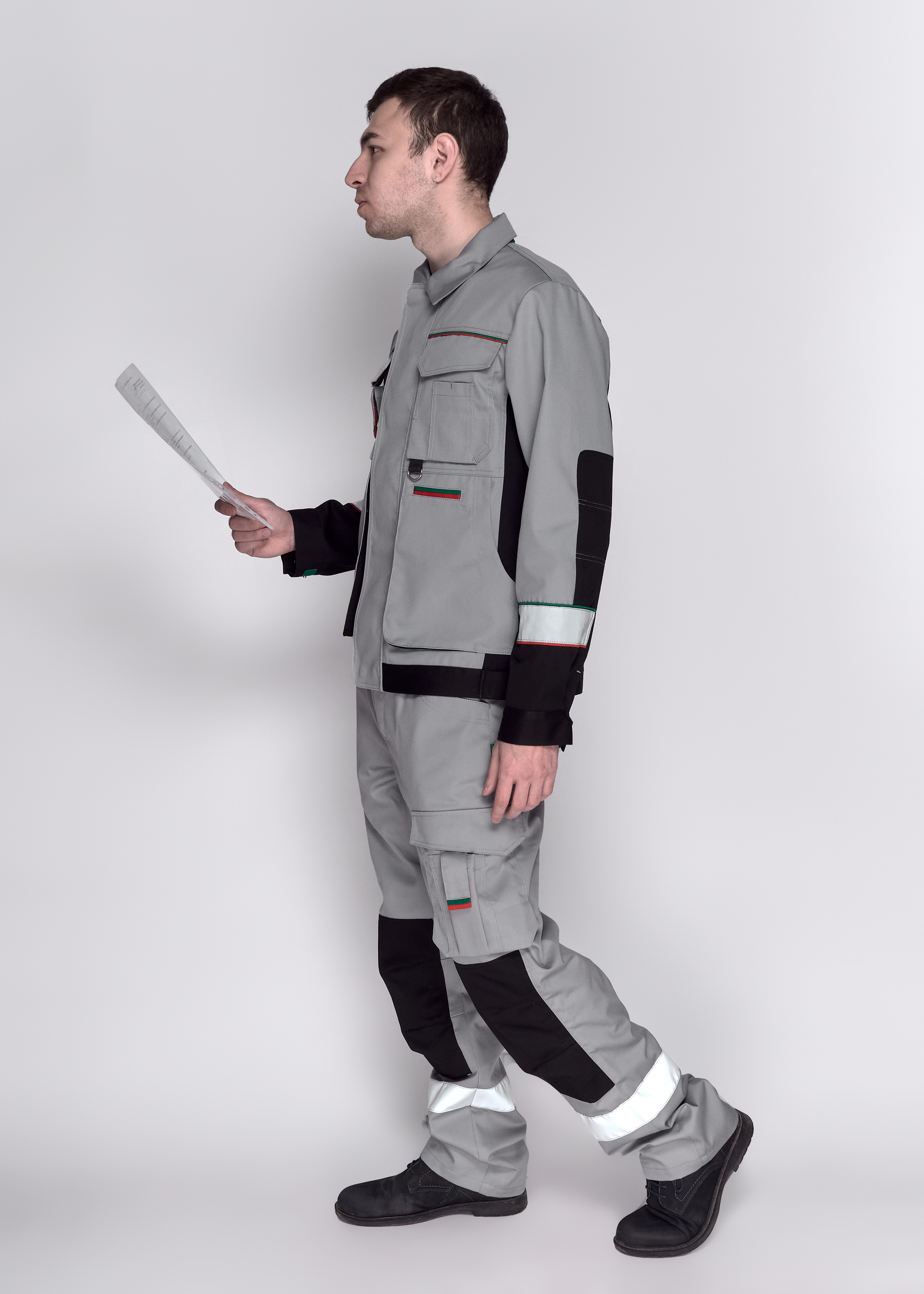 Передние половинки с боковыми карманами, объемными наколенниками.