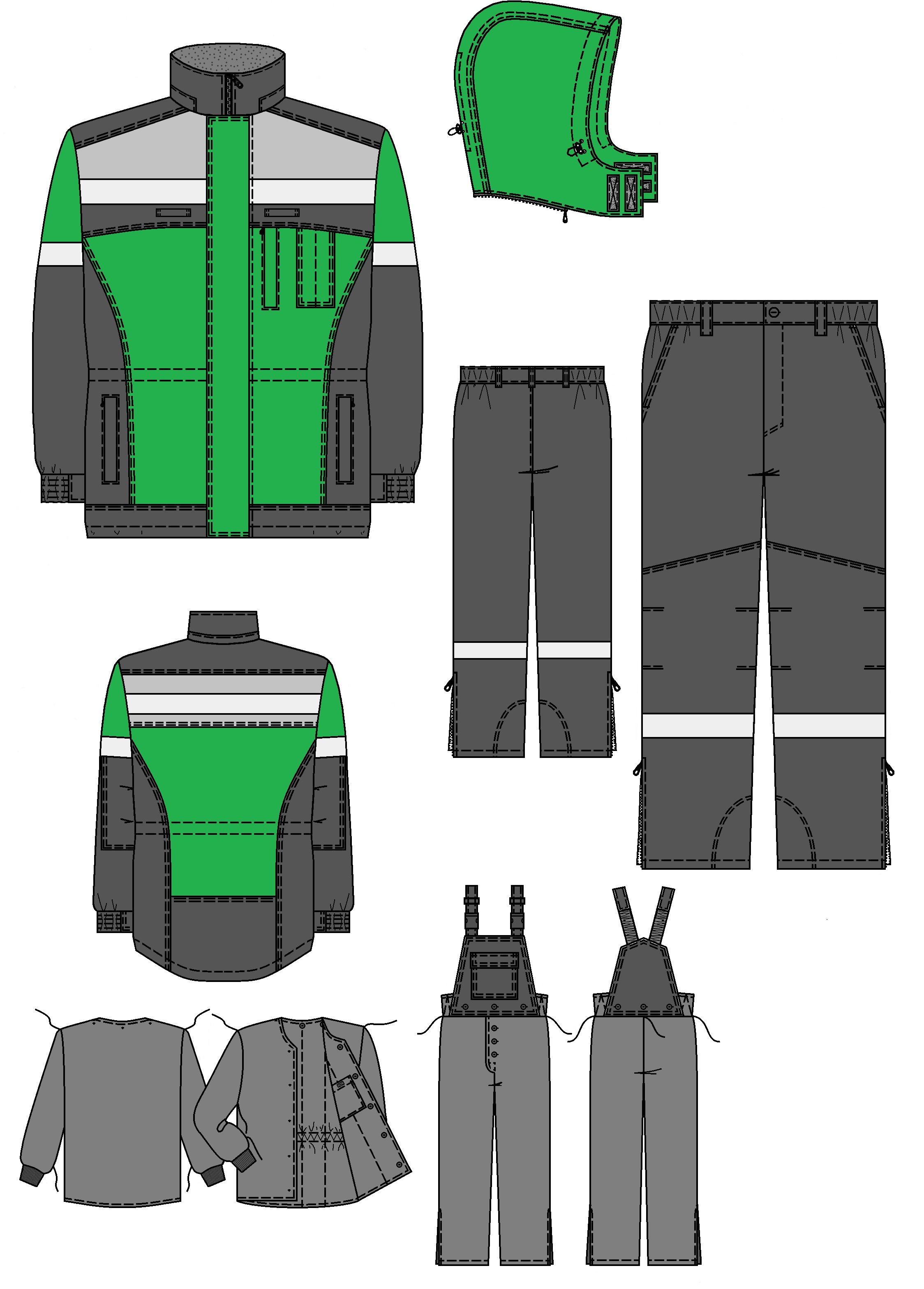 Отдельно могут изготавливаться съемный верх куртки и съемный верх брюк.