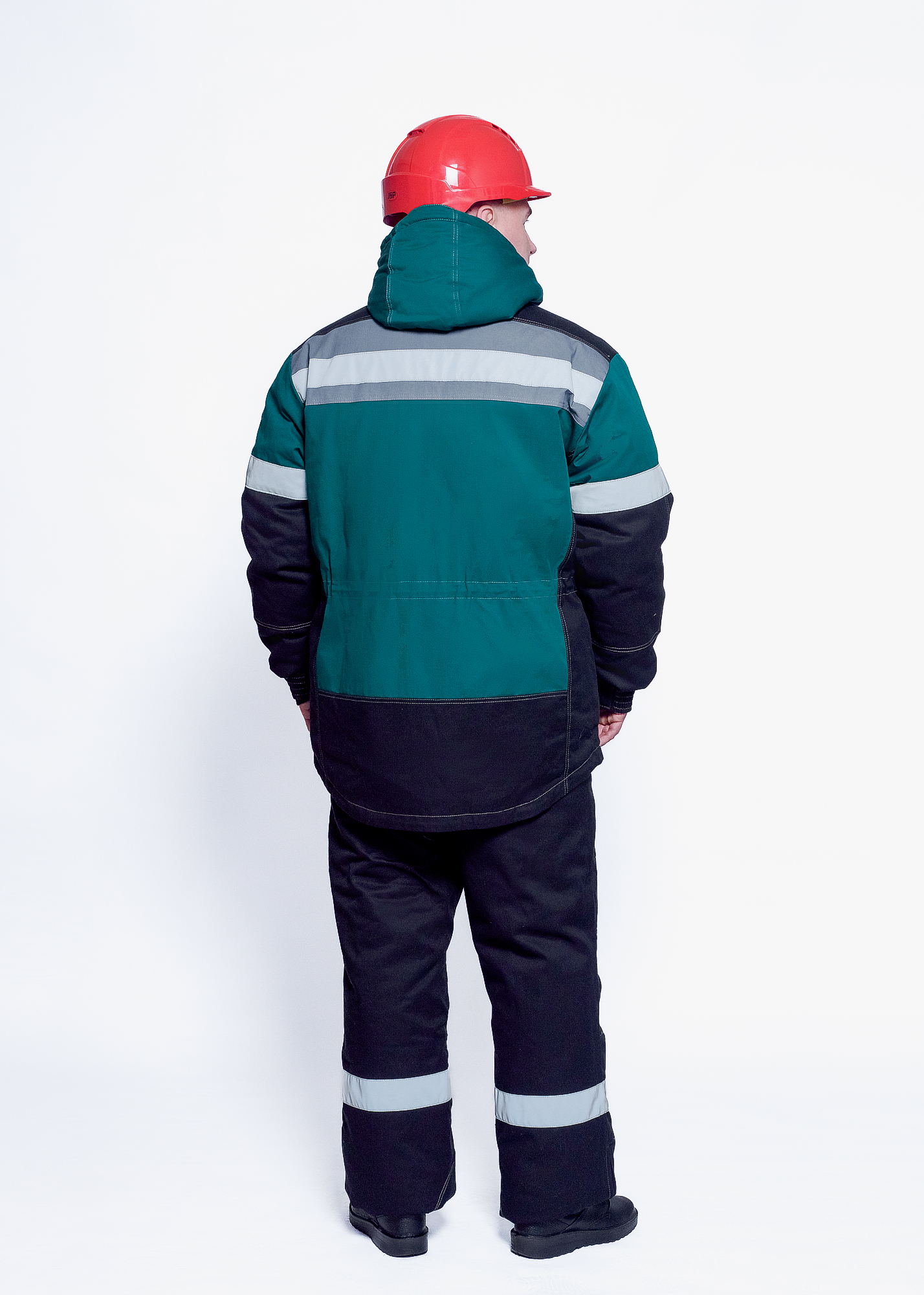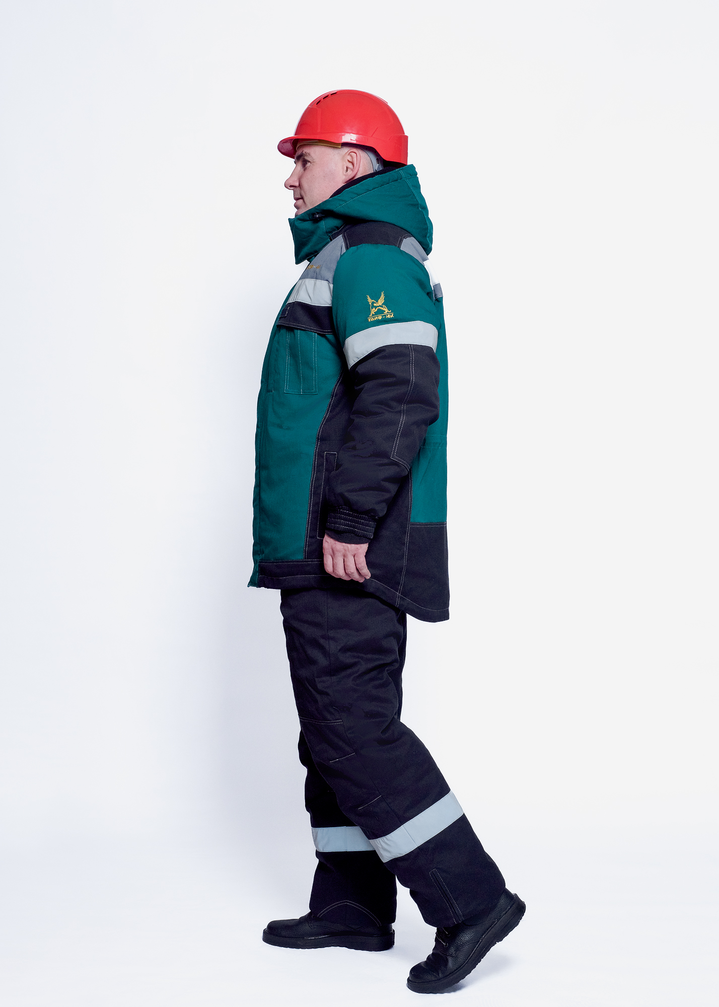 Костюм мужской состоит из куртки и брюк со съемным утеплителем.