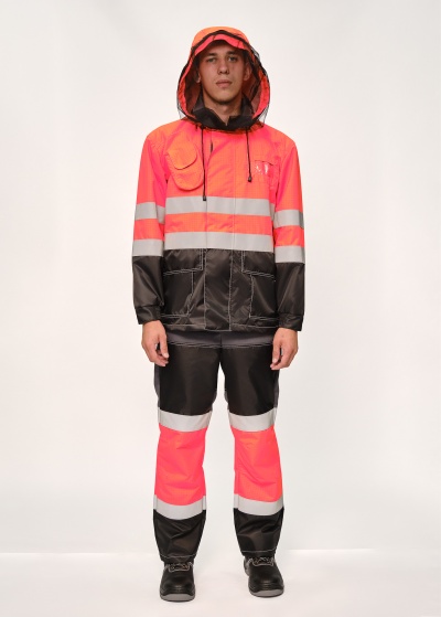 5966АНЛ Костюм мужской сигнальный летний для защиты от нефти и нефтепродуктов, повышенных температур, теплового излучения, конвективной теплоты, статического электричества, общих производственных загрязнений и механических воздействий