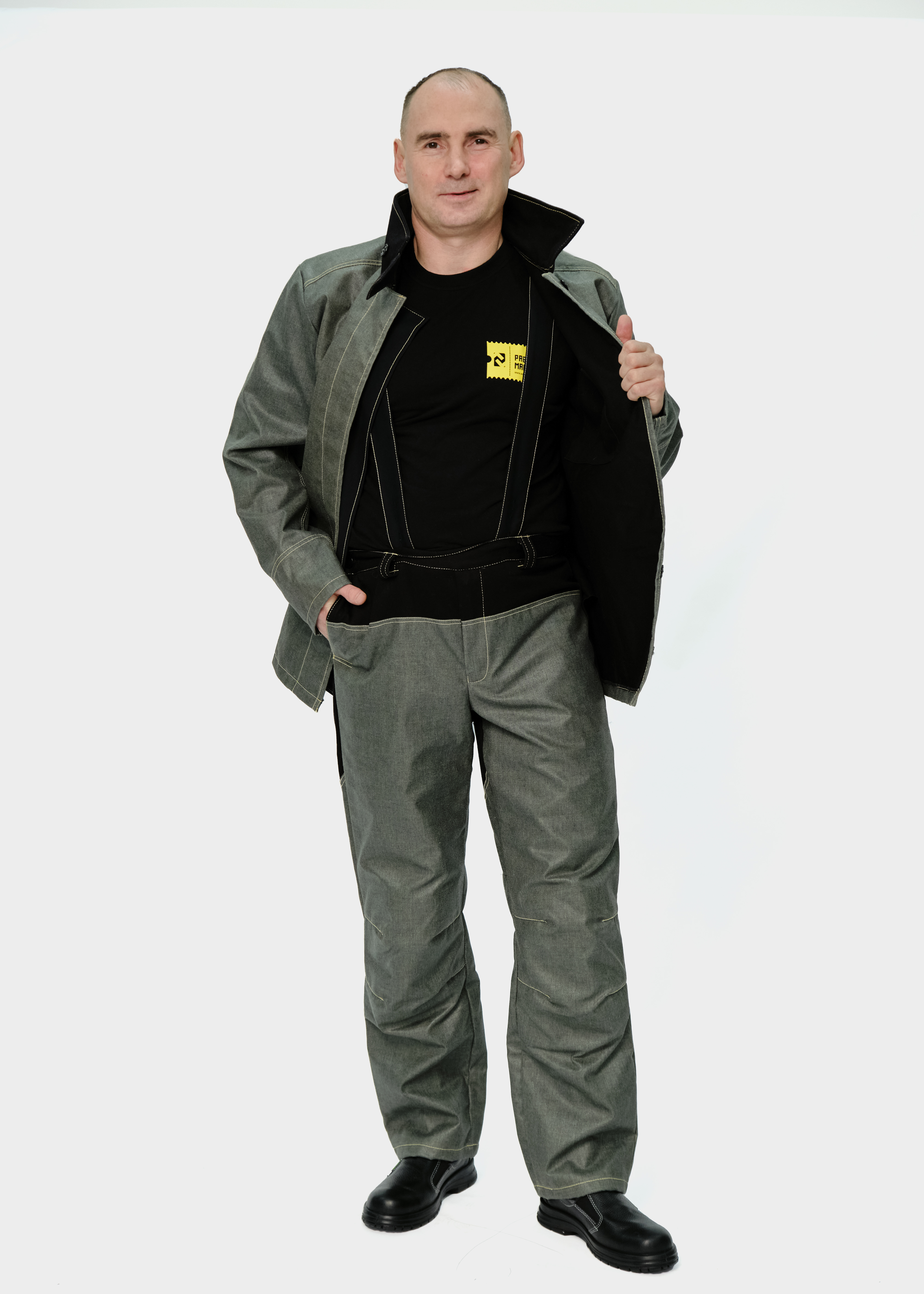Основной материал: ткань хлопчатобумажная с огнестойкой пропиткой, 450-500г/м2.