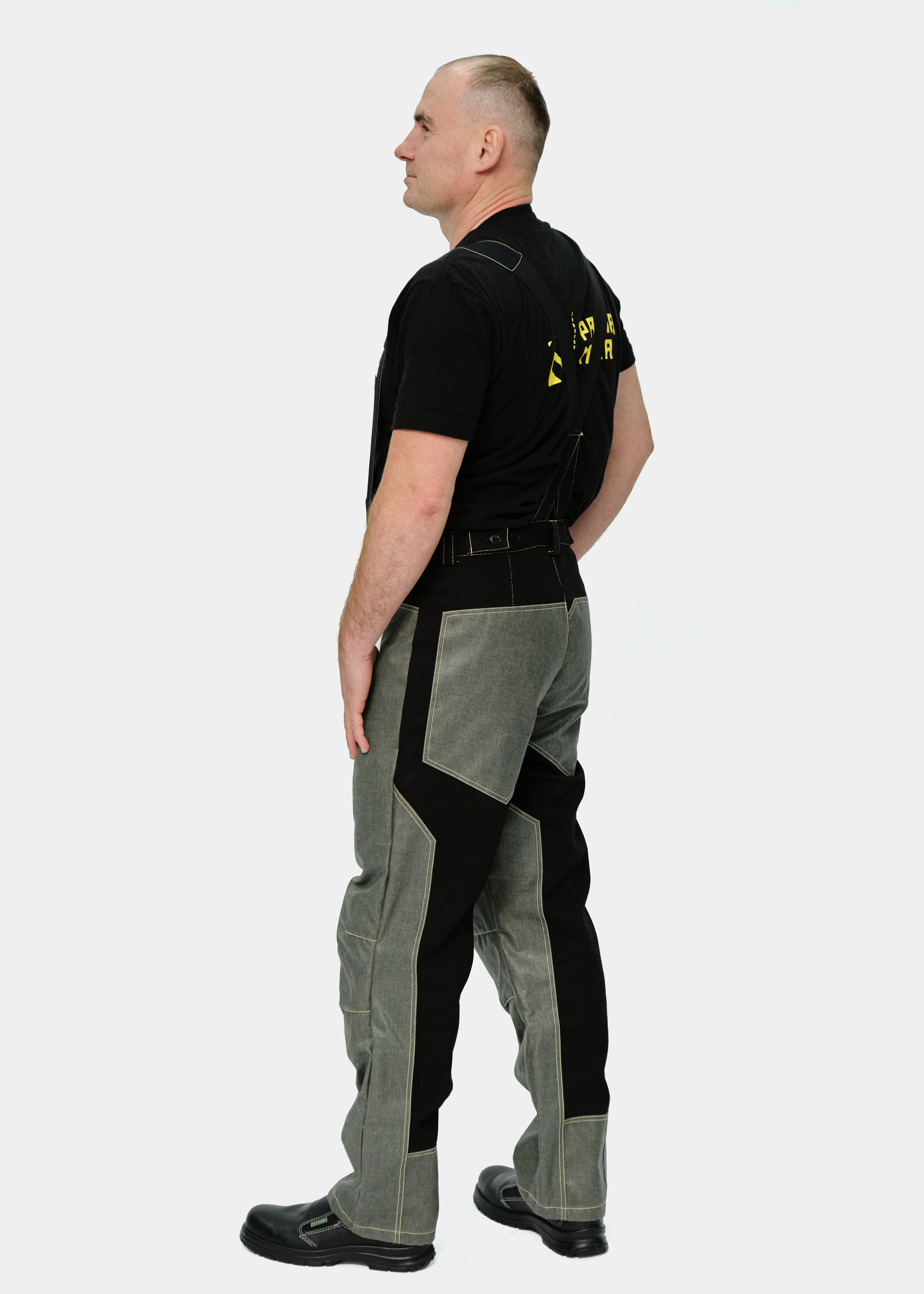 Передние половинки с накладками, с объемом в области колен. С внутренний стороны карманы для амортизационных вкладышей.