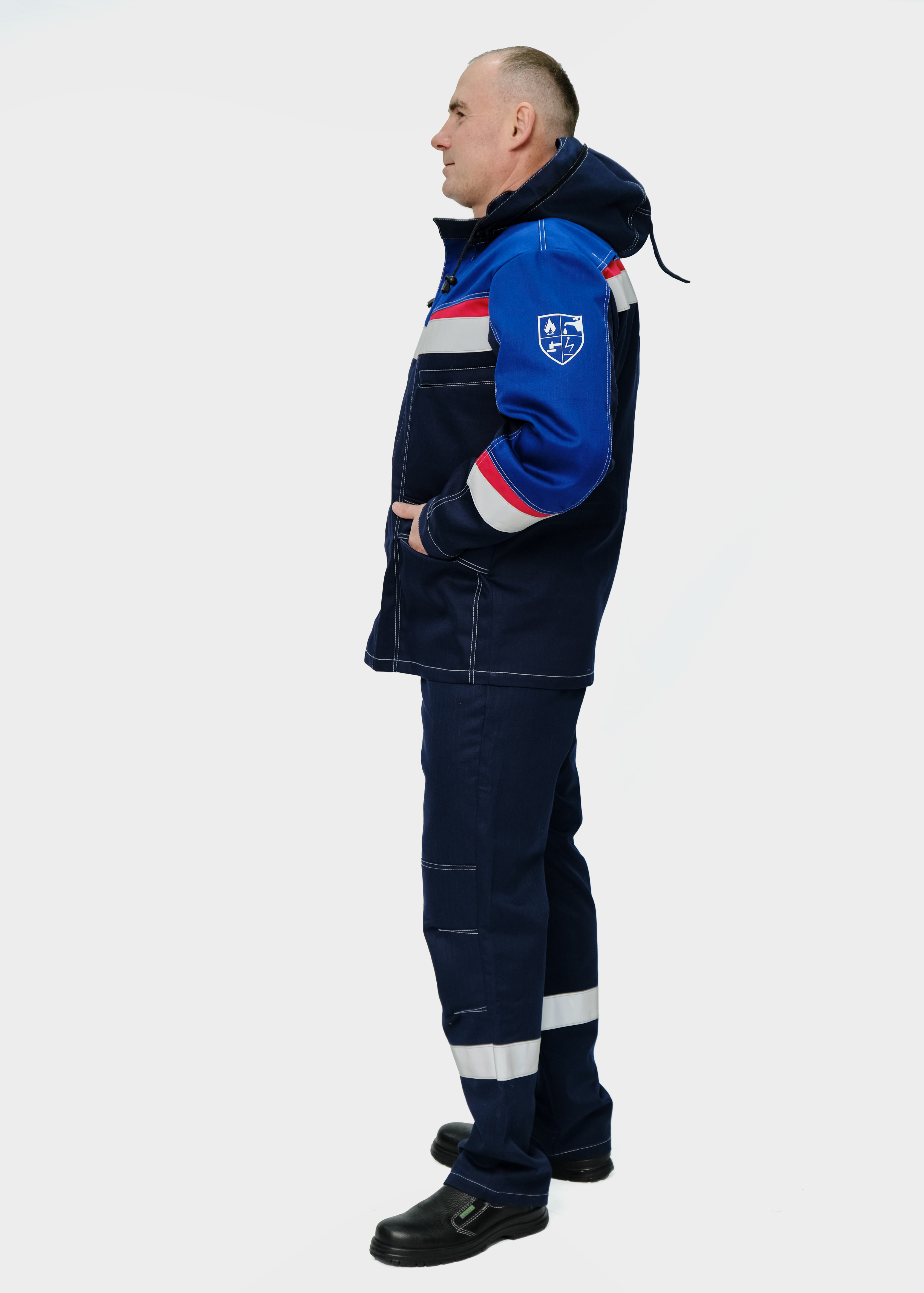 Костюм мужской летний для защиты от нефтепродуктов, повышенных температур, теплового излучения, конвективной теплоты, статического электричества, общих производственных загрязнений и механических воздействий.
