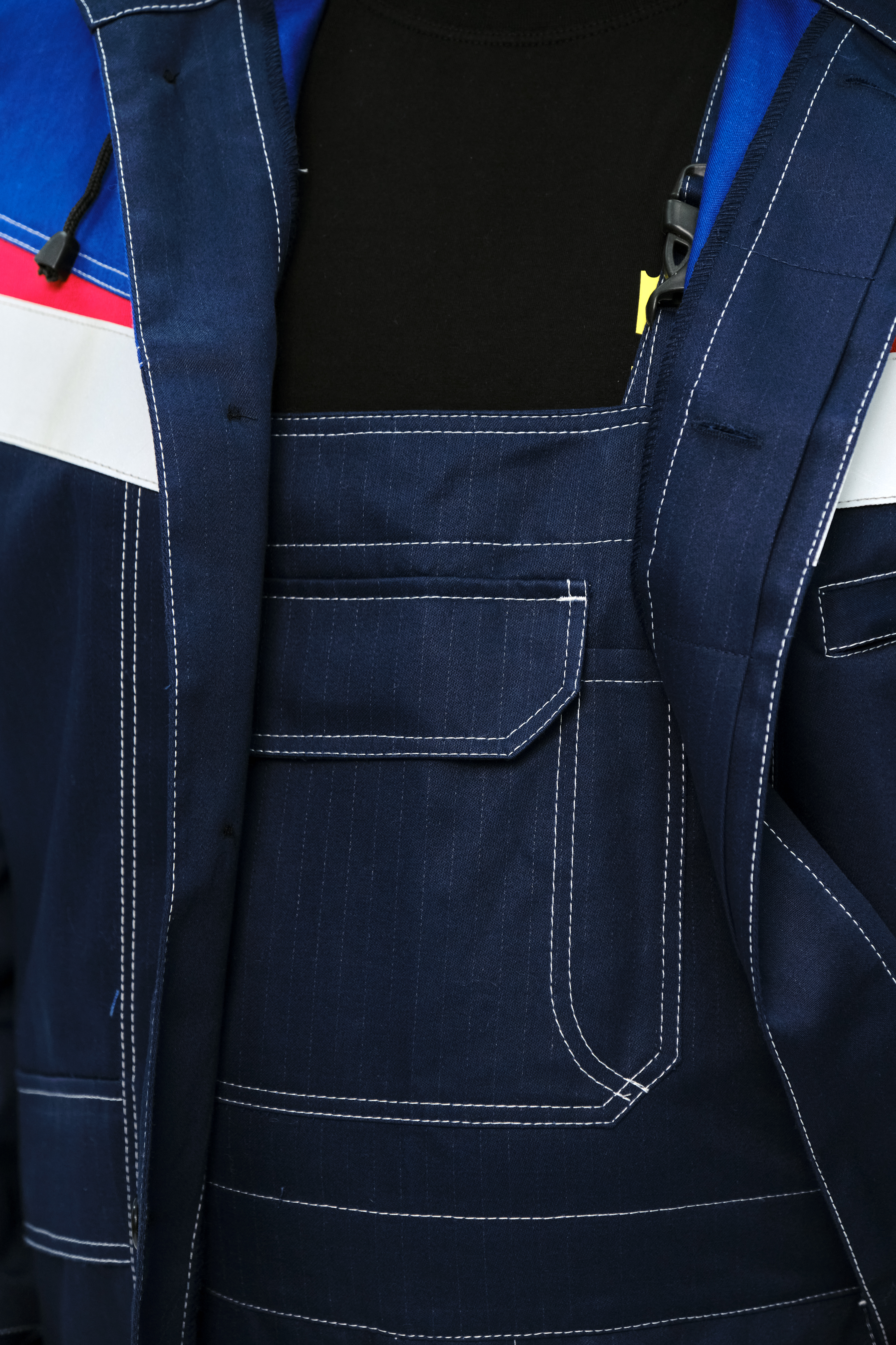 Грудка притачная, с накладным карманом с клапаном, застегивающимся на одну контактную ленту, с отделением для карандаша.