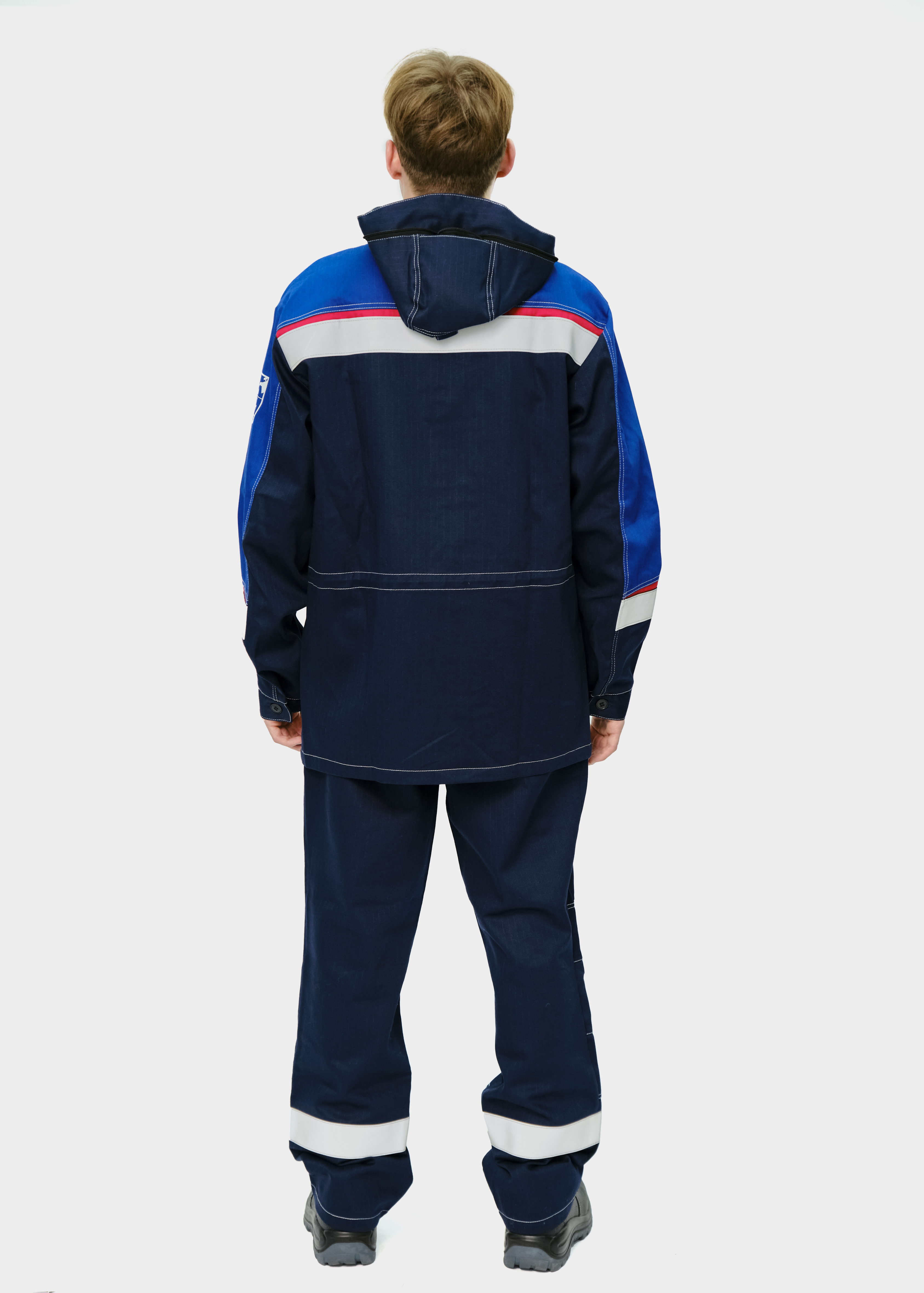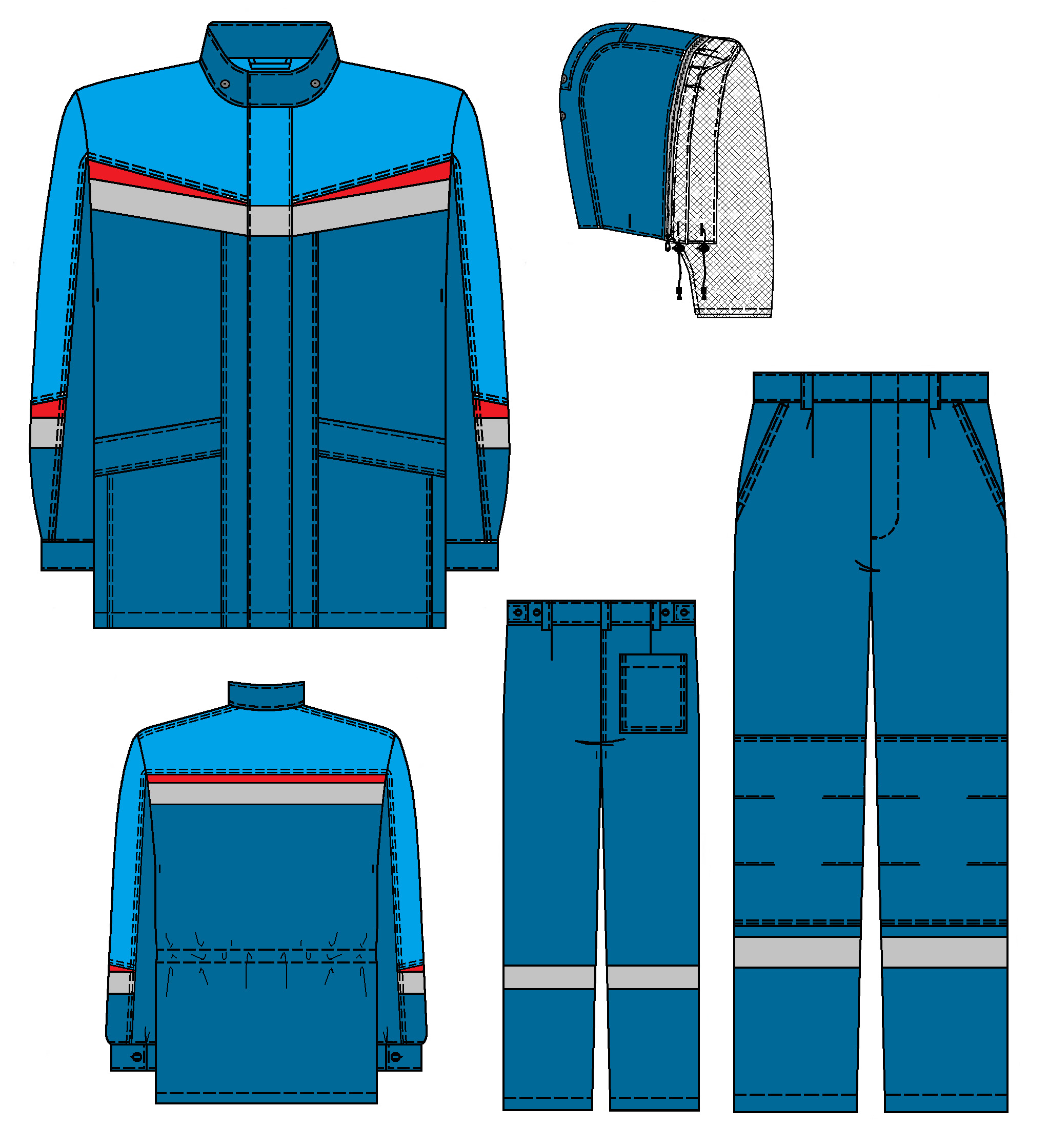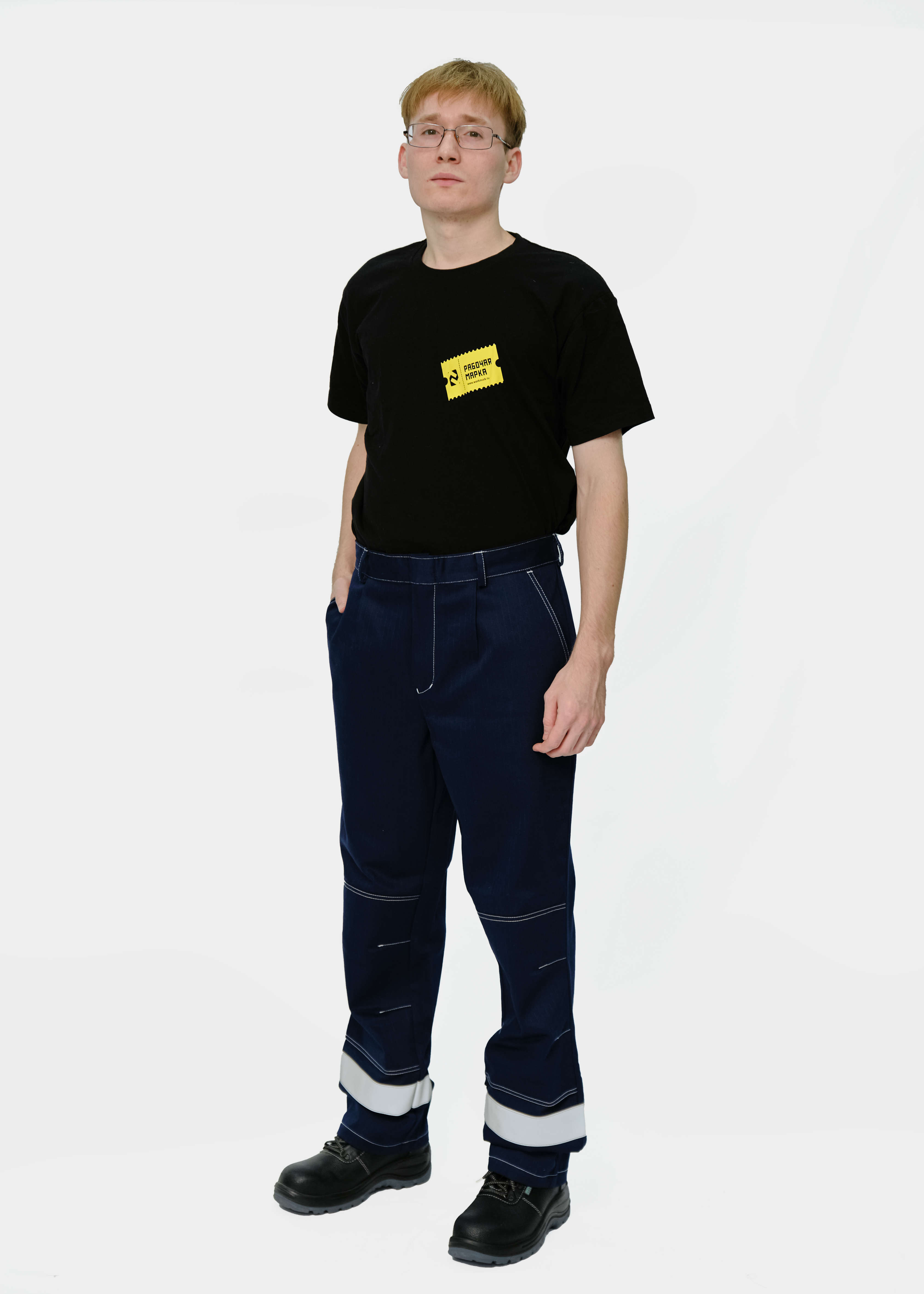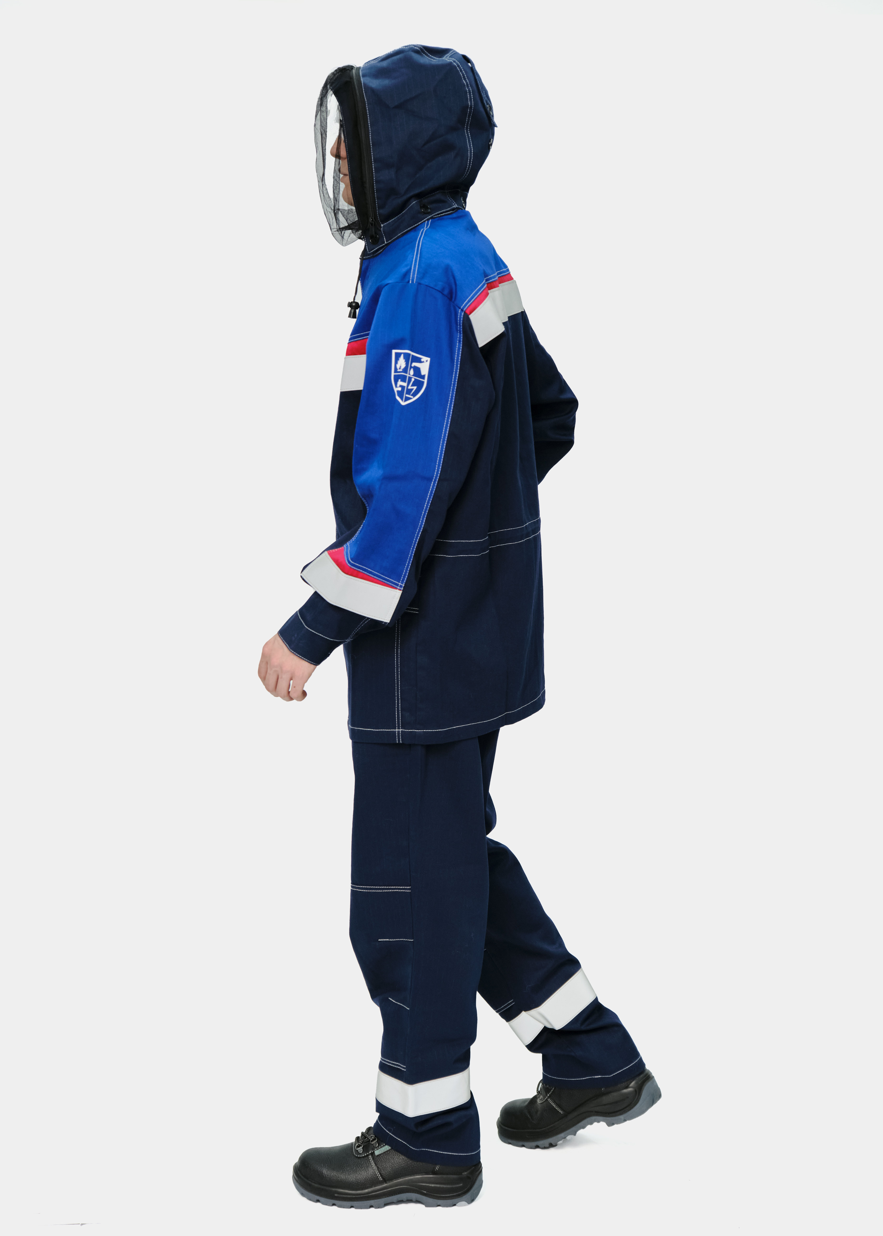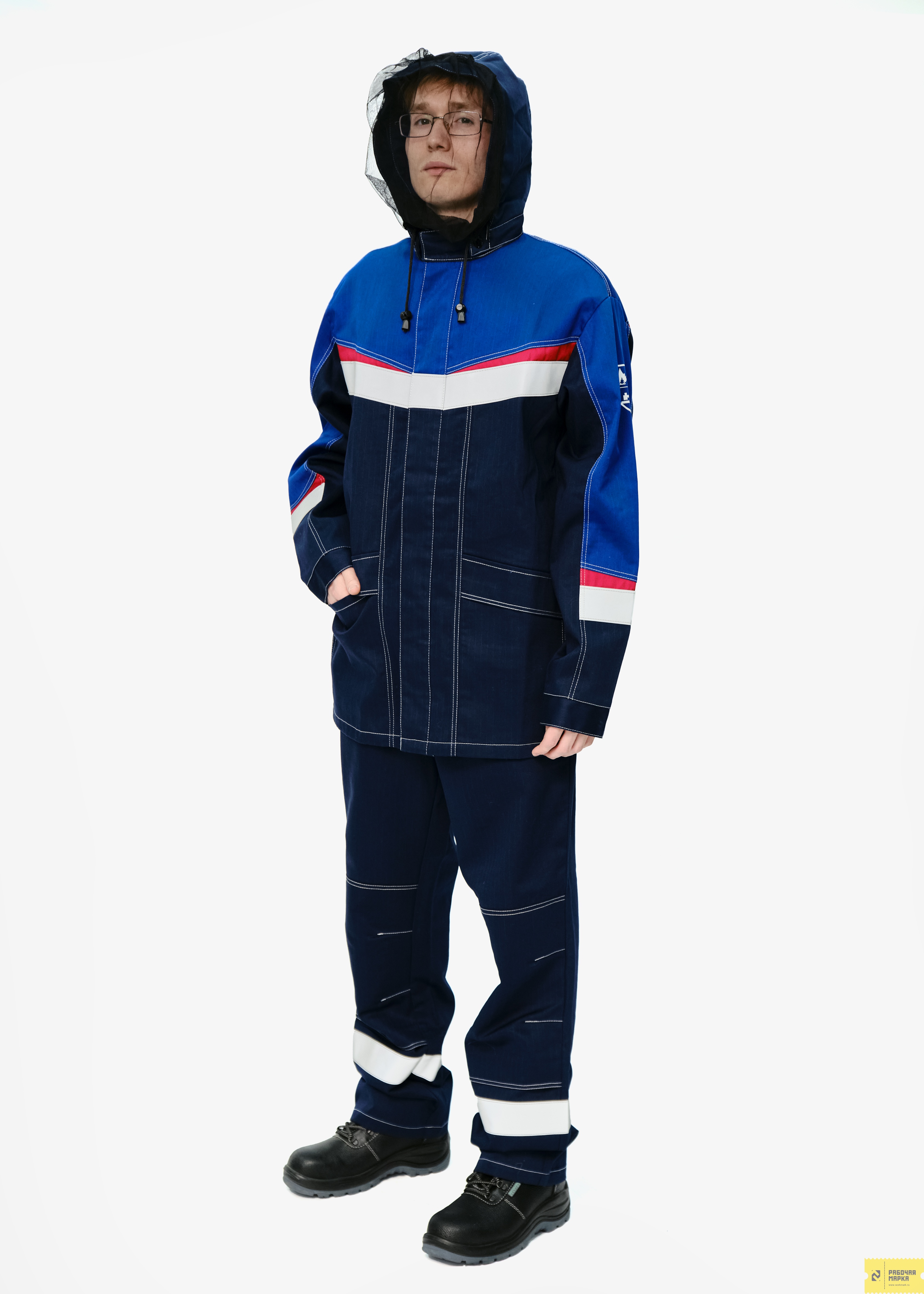 Костюм мужской летний для защиты от нефтепродуктов, повышенных температур, теплового излучения, конвективной теплоты, статического электричества, общих производственных загрязнений и механических воздействий.