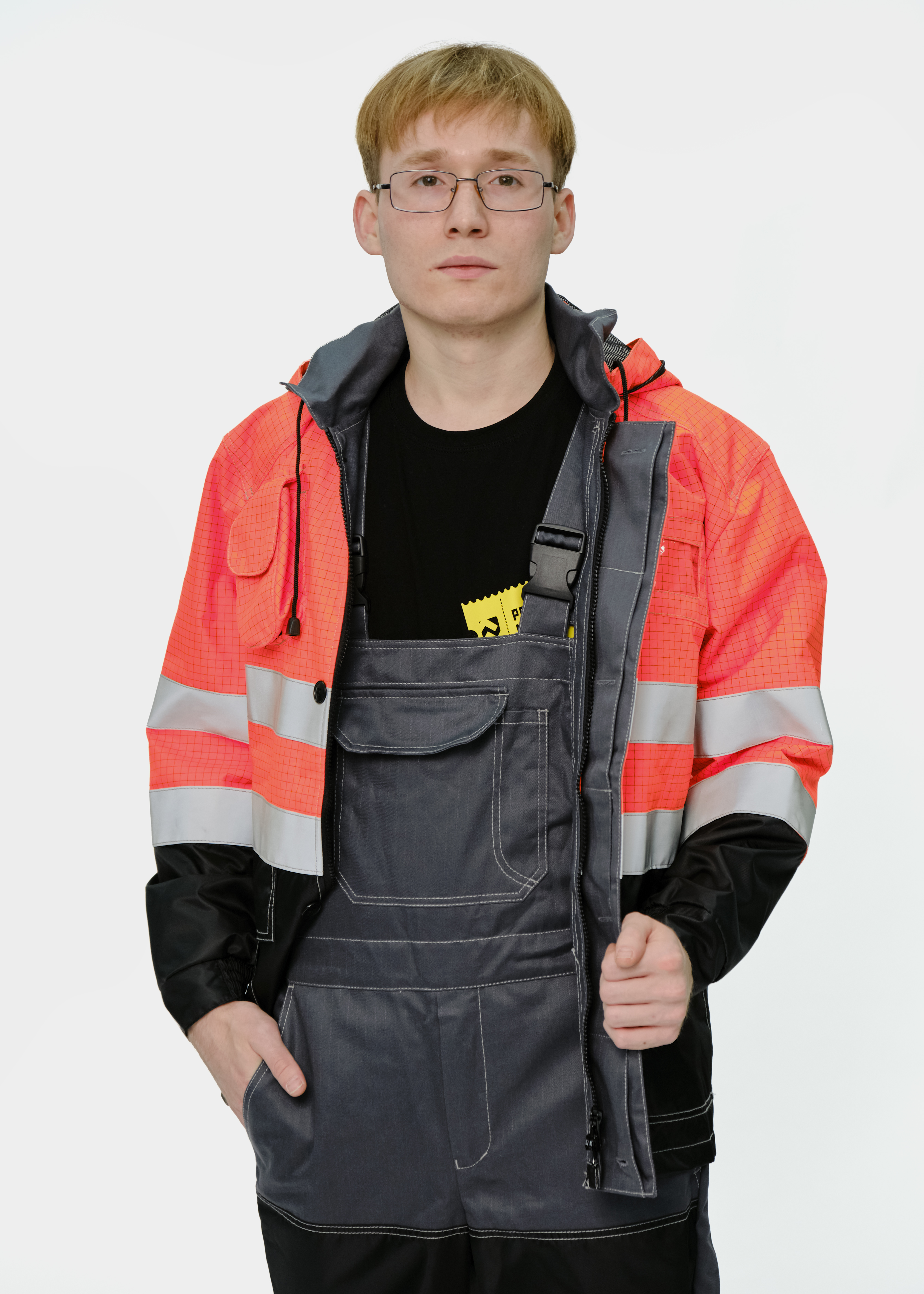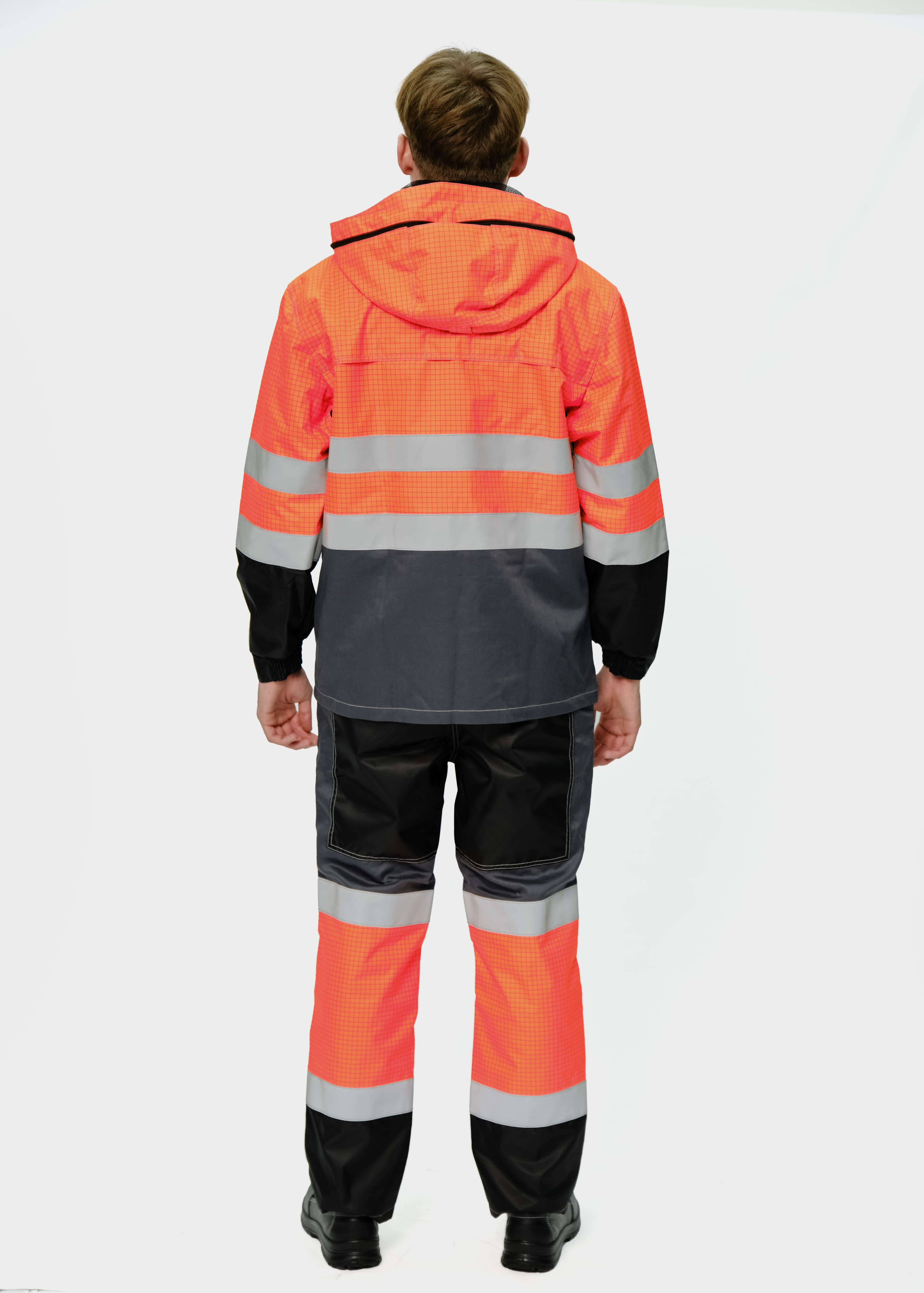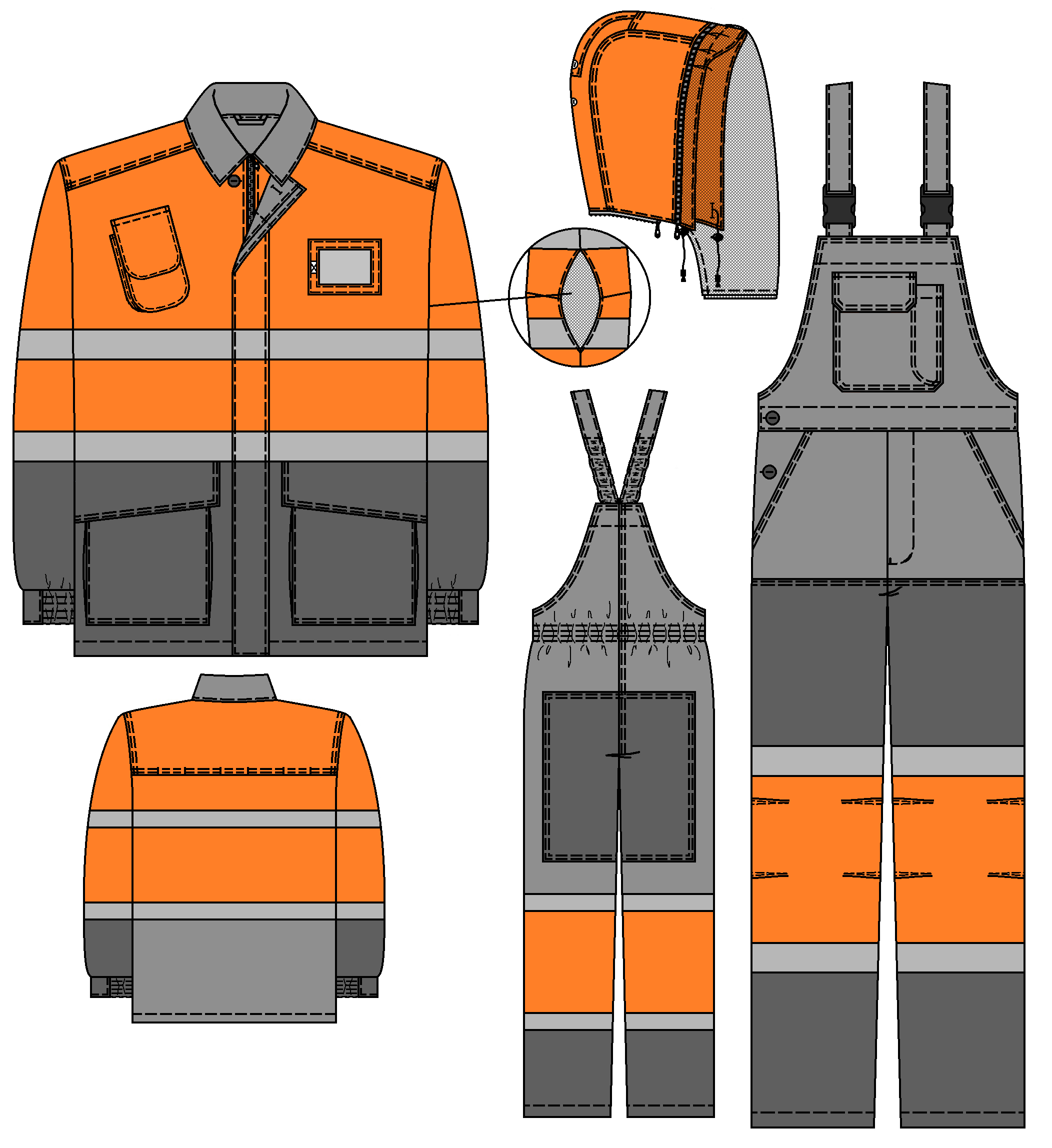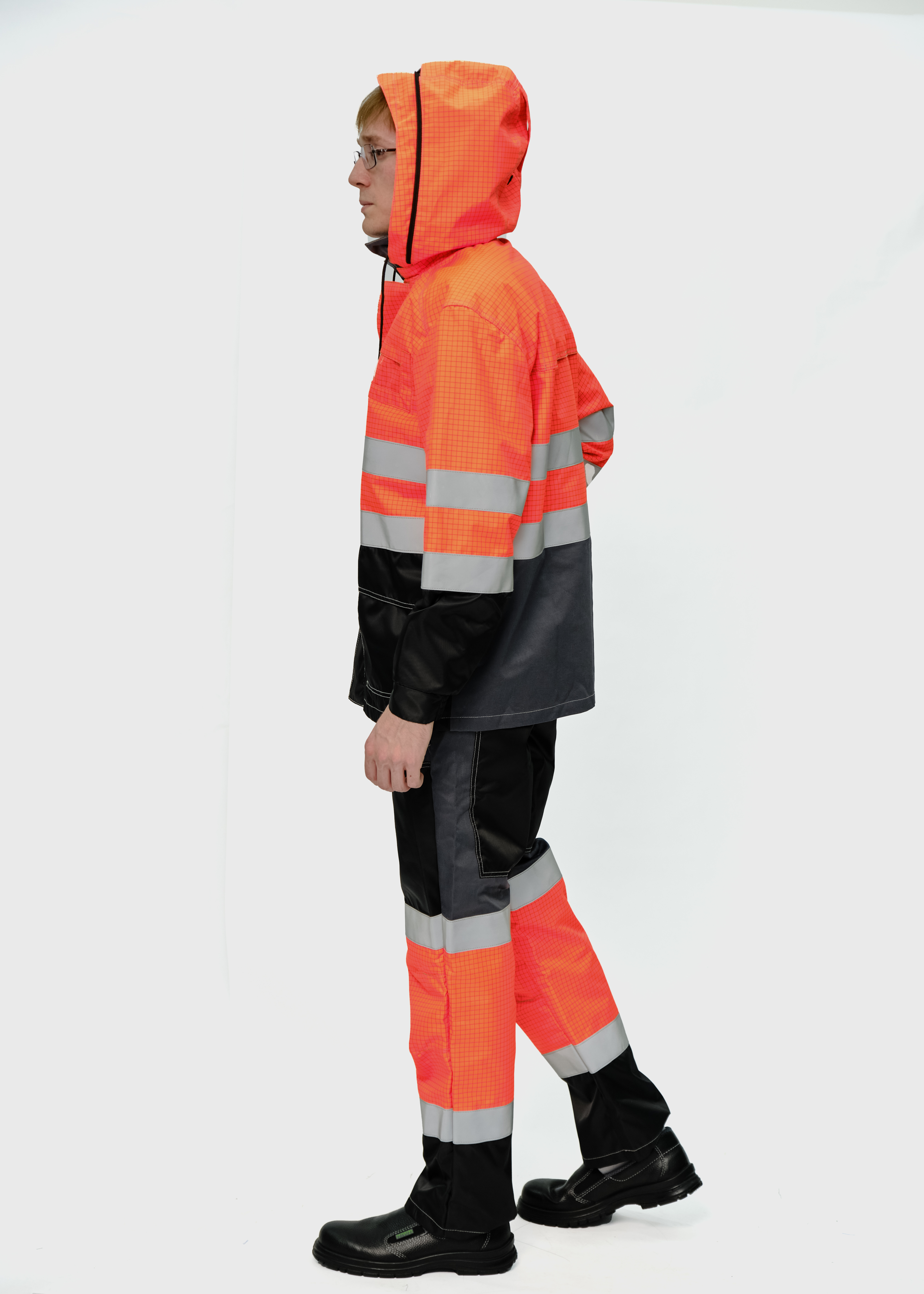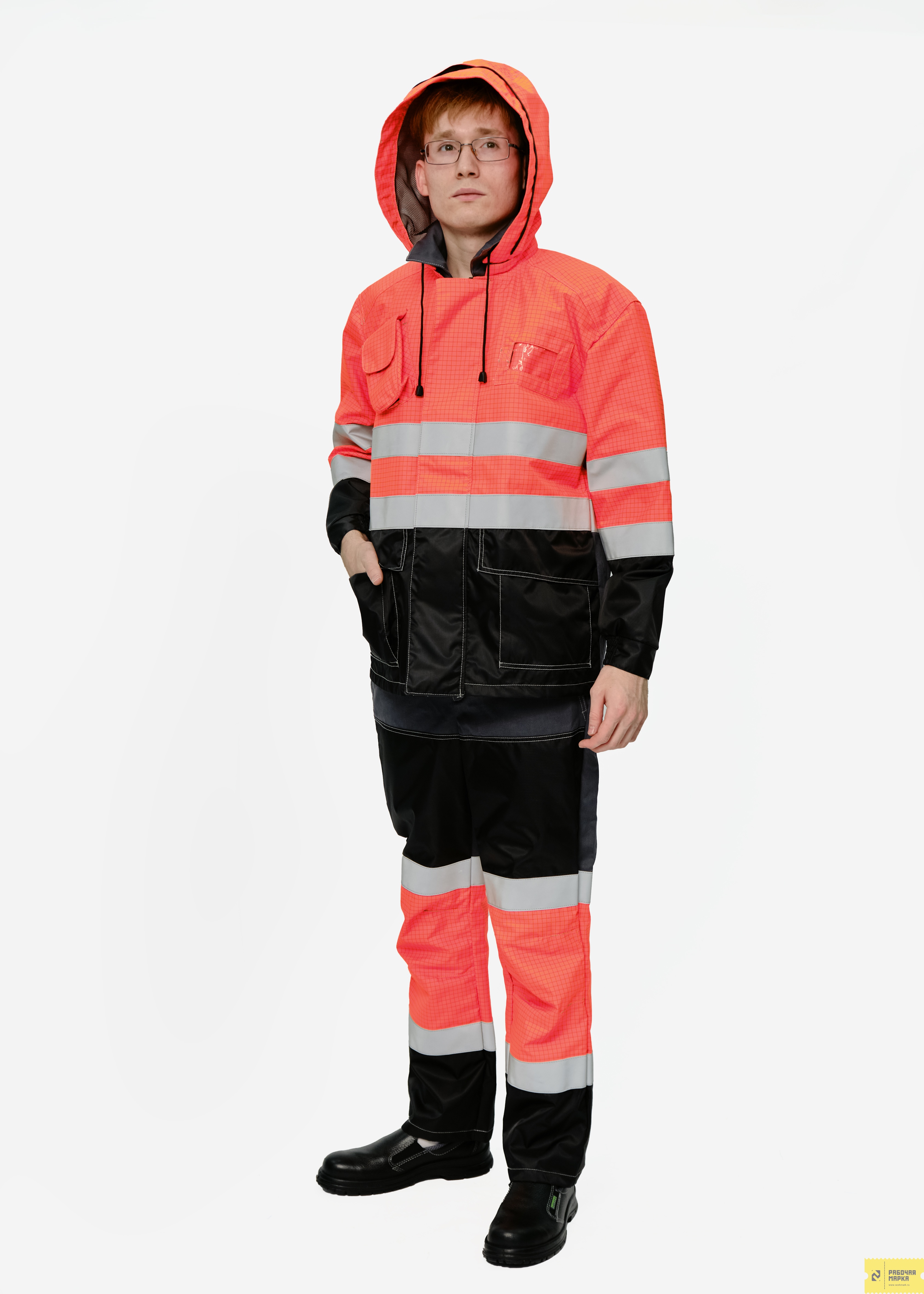 Костюм мужской сигнальный летний для защиты от нефти и нефтепродуктов, повышенных температур, теплового излучения, конвективной теплоты, статического электричества, общих производственных загрязнений и механических воздействий.