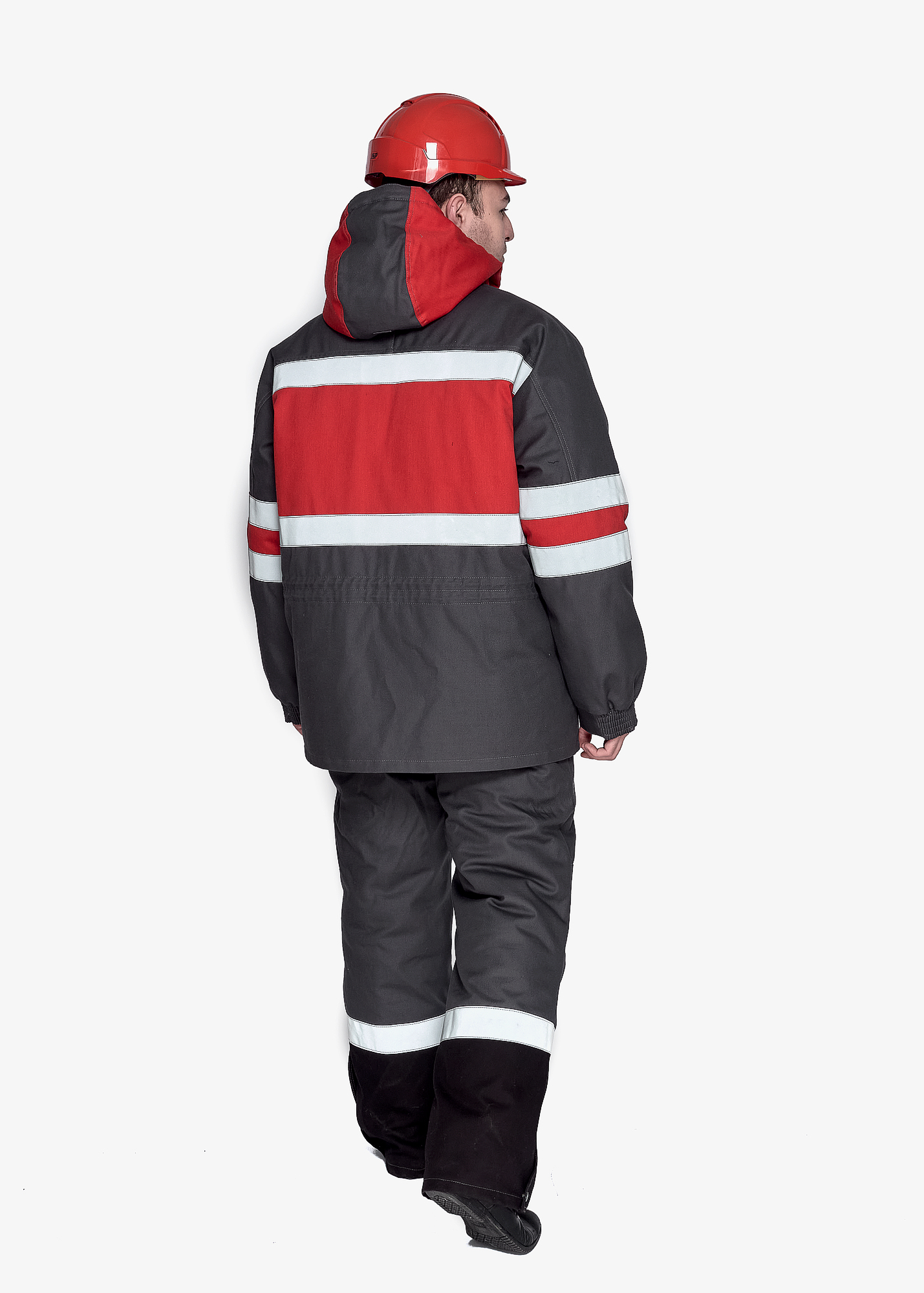 Костюм мужской состоит из куртки и брюк со съемным утеплителем.
