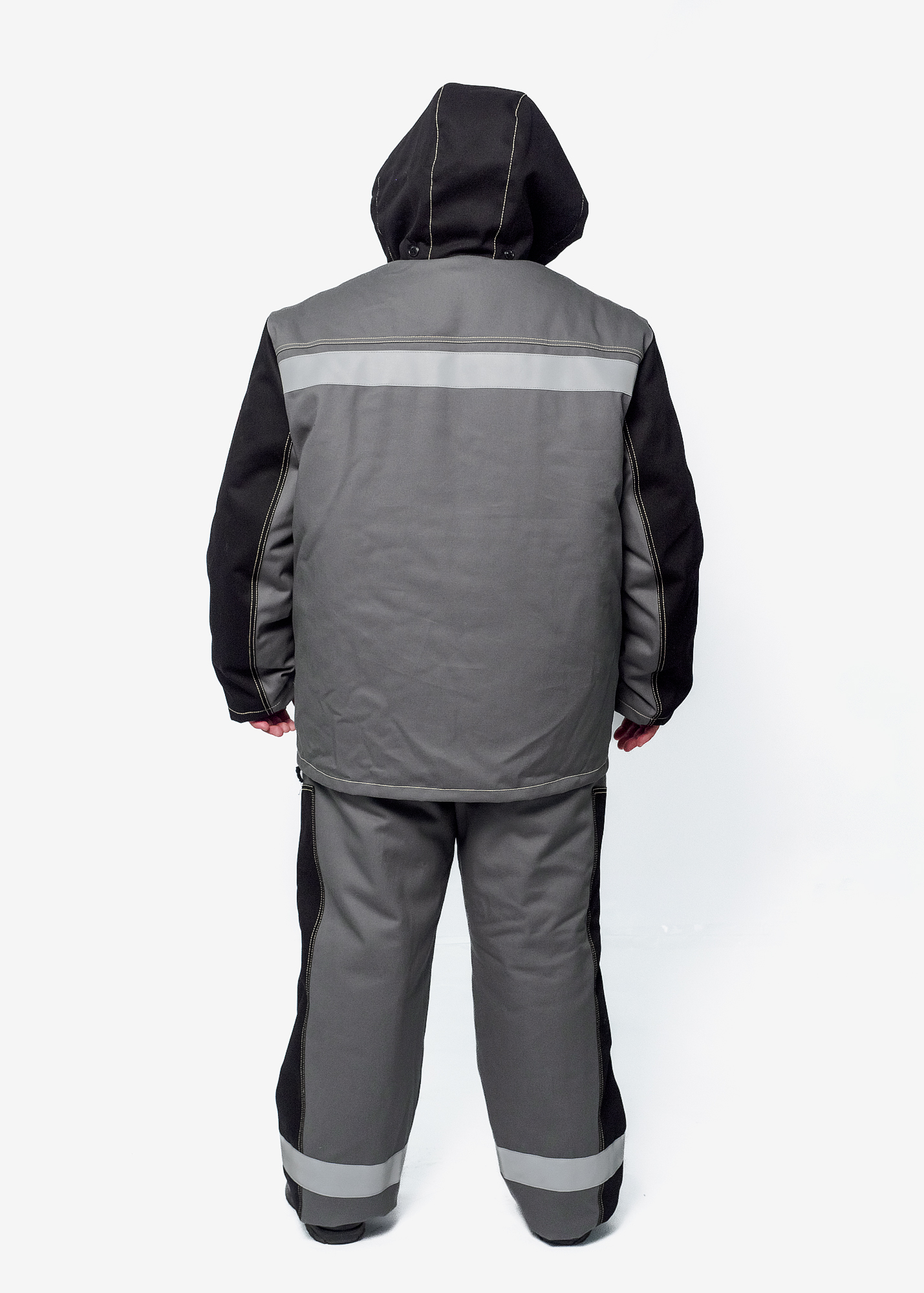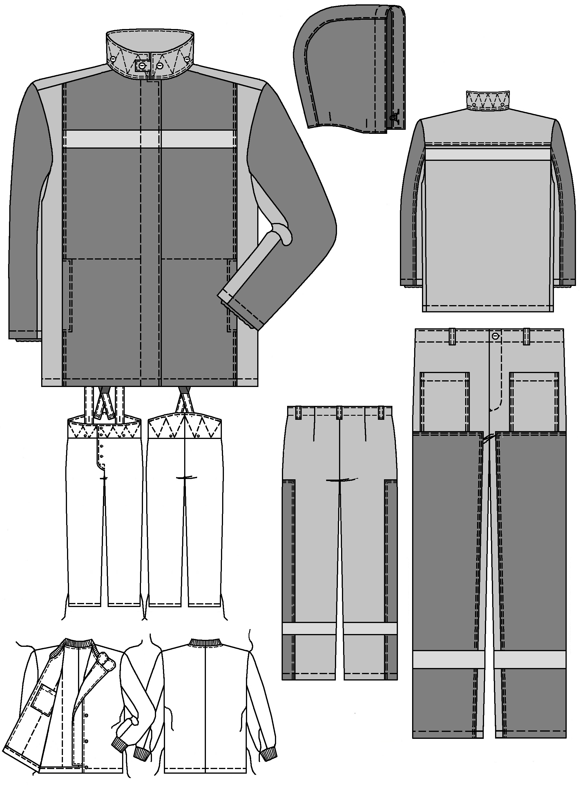 Костюм мужской состоит из куртки и брюк со съемным утеплителем.