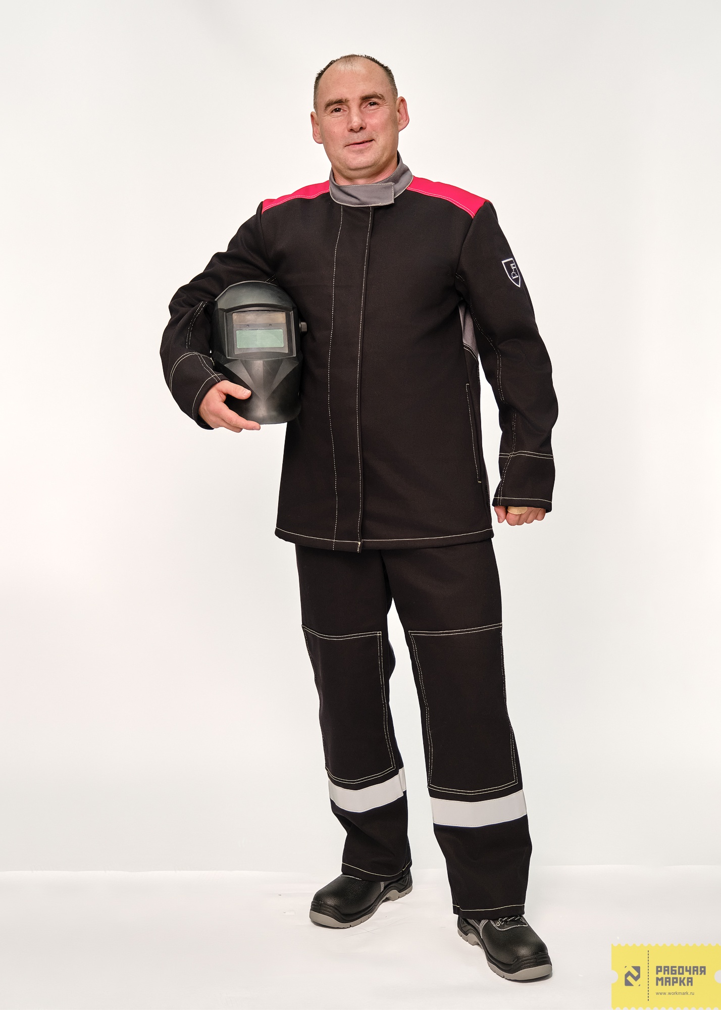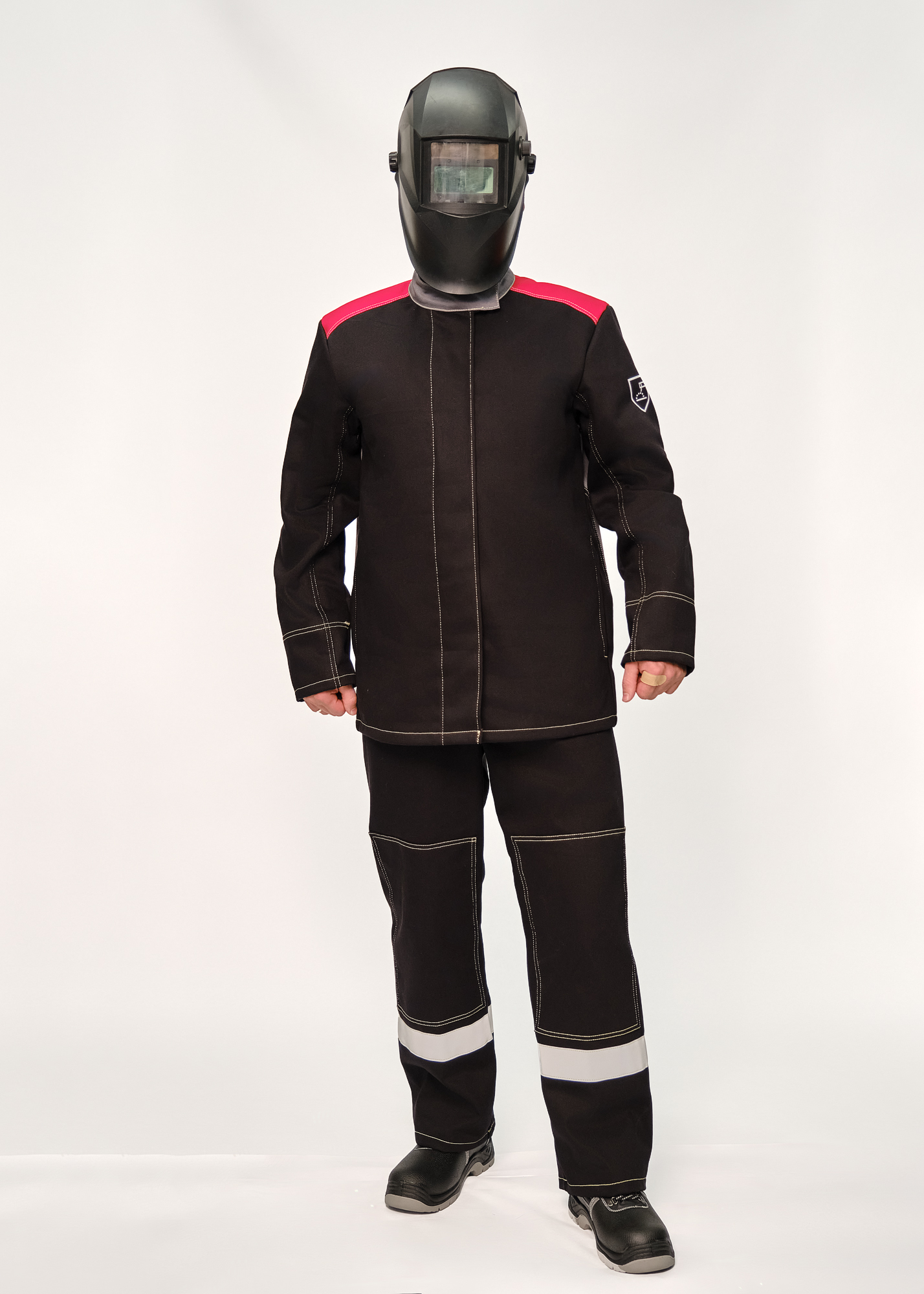 Материал основы и накладок: ткань хлопчатобумажная с огнестойкой пропиткой, 450-500г/м2.