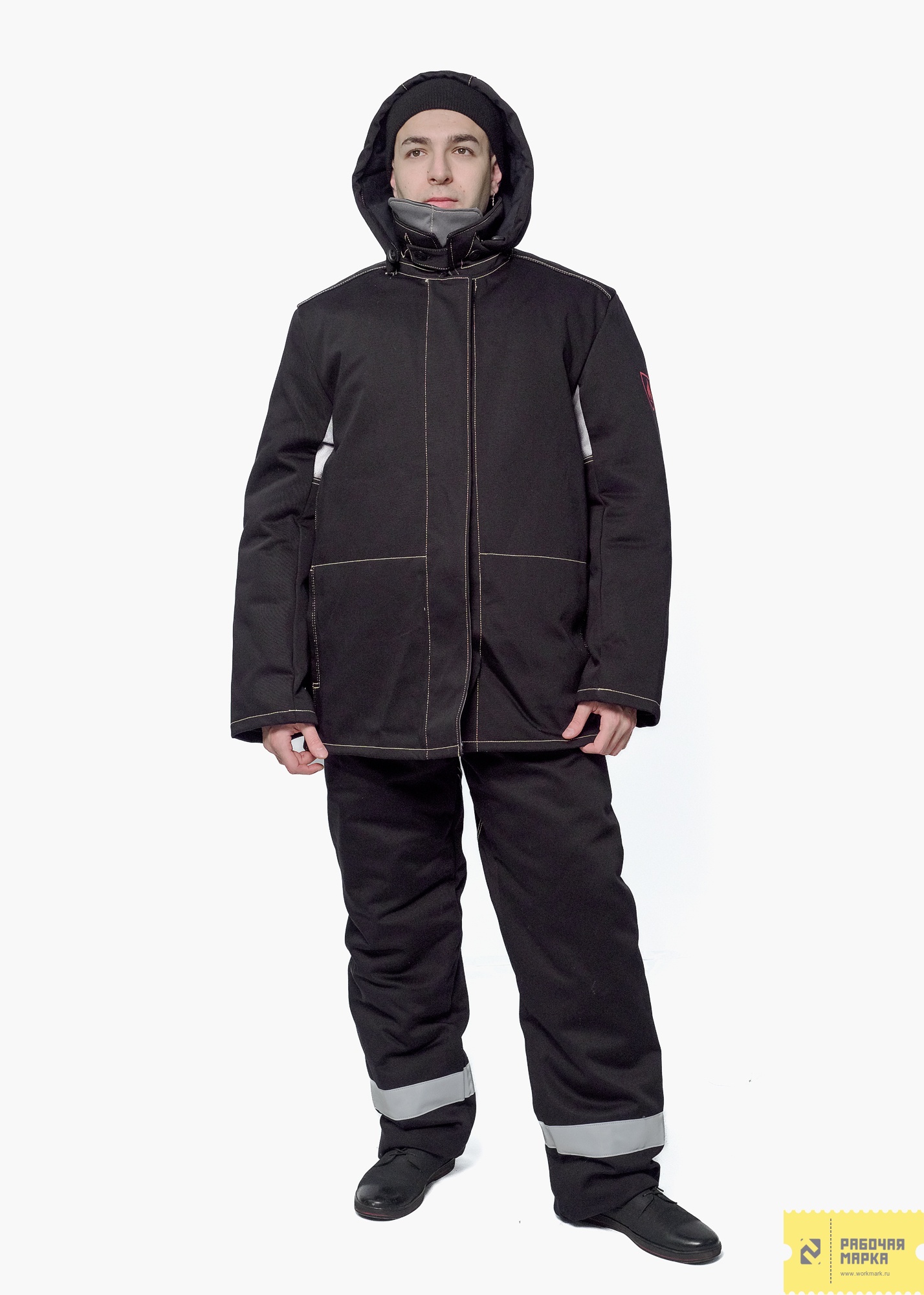 Костюм мужской зимний состоит из куртки и брюк с пристегивающимся утеплителем