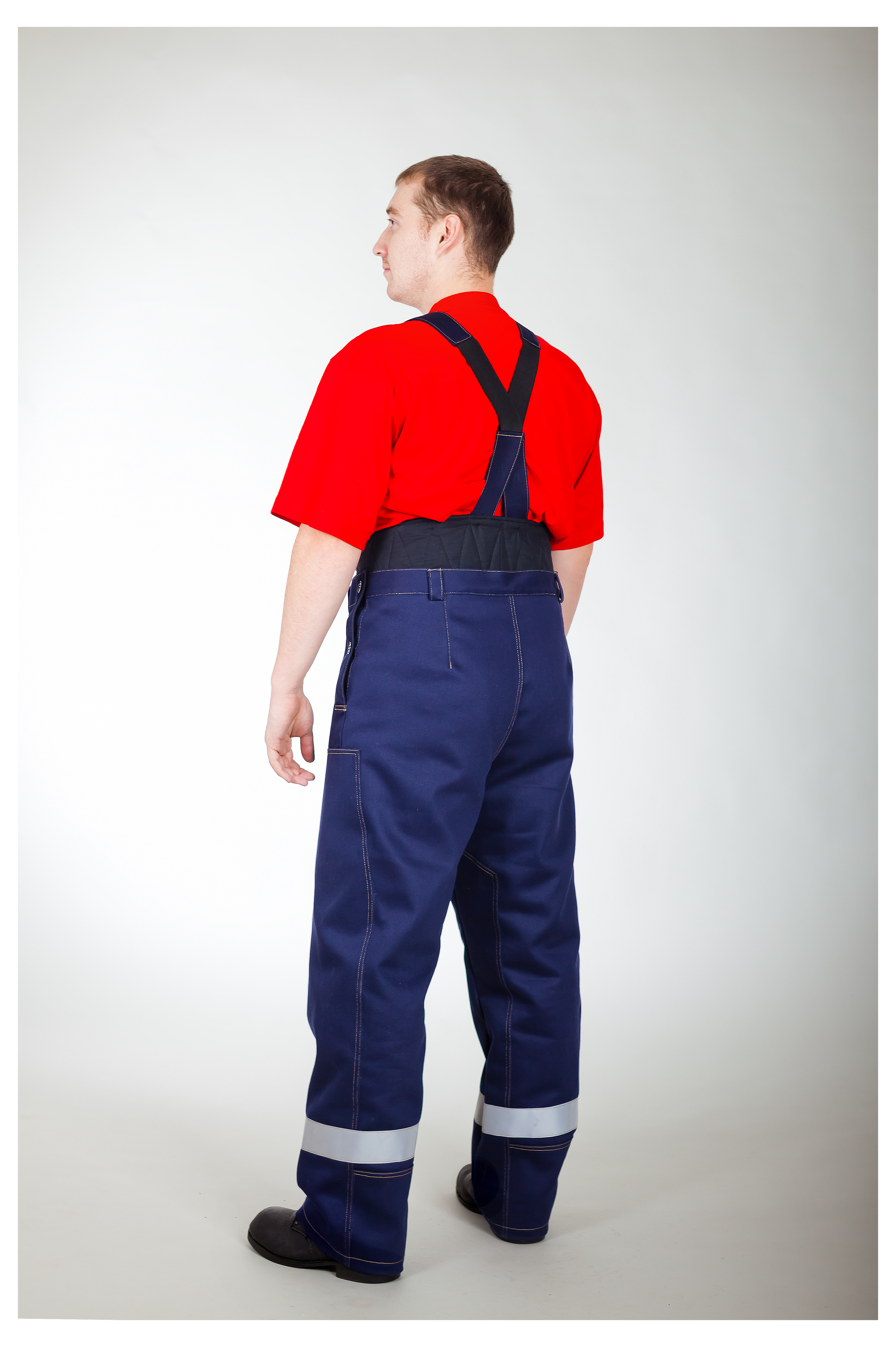 Теплозащитная подкладка с расширенным поясом, с гульфиком, с пристегивающимися на пуговицы бретелями со вставками из эластичной тесьмы.