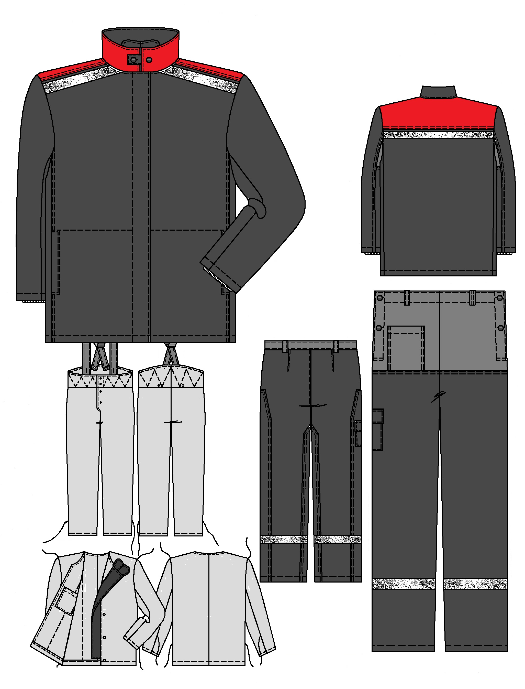 Материал верха: ткань хлопчатобумажная с огнестойкой отделкой, 330-450 г/м².