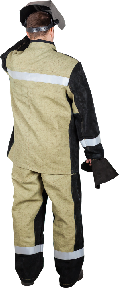 Костюм сварщика летний состоит из куртки и полукомбинезона.