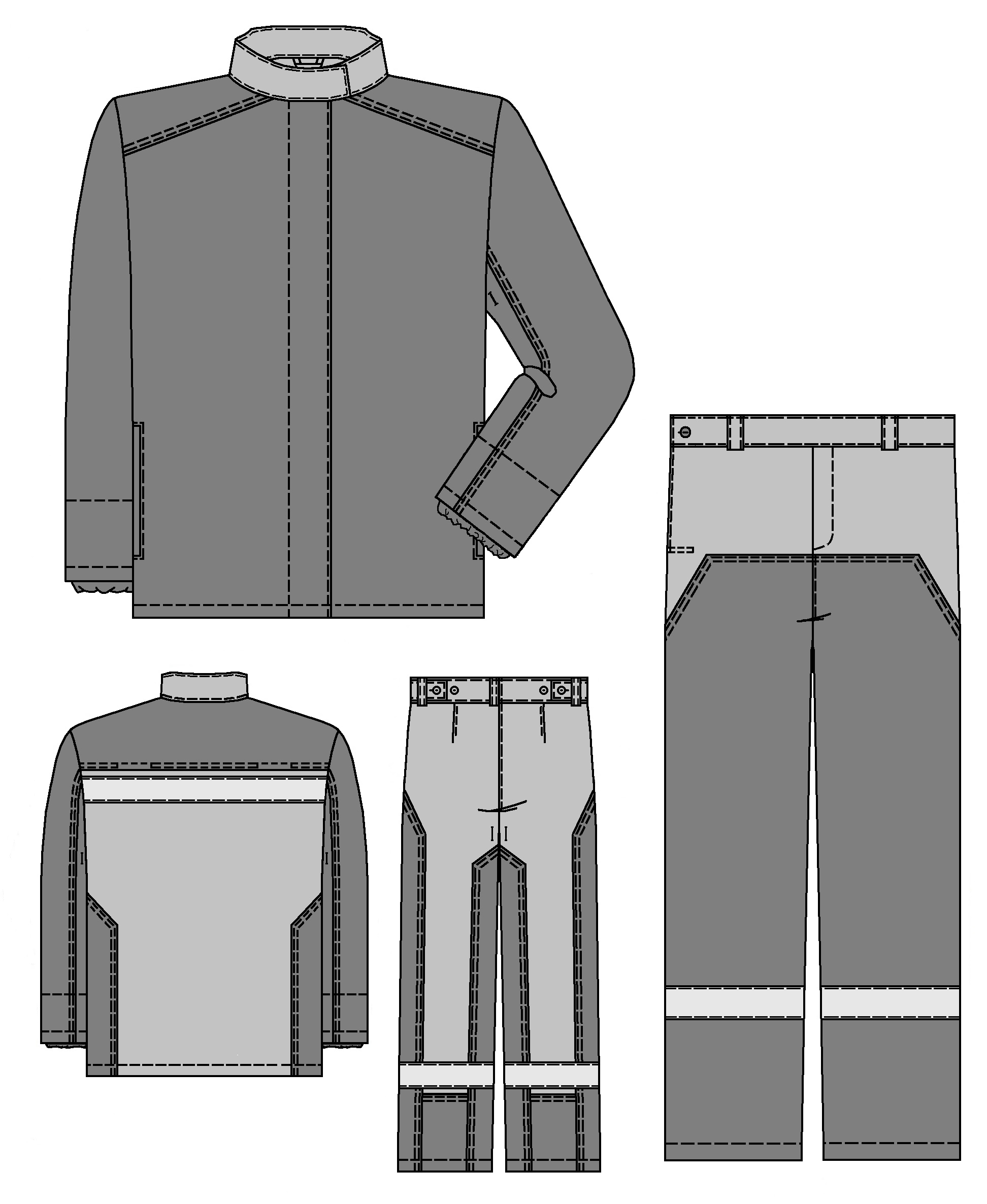Материал основы: ткань хлопчатобумажная с огнестойкой отделкой, 350-450 г/м².