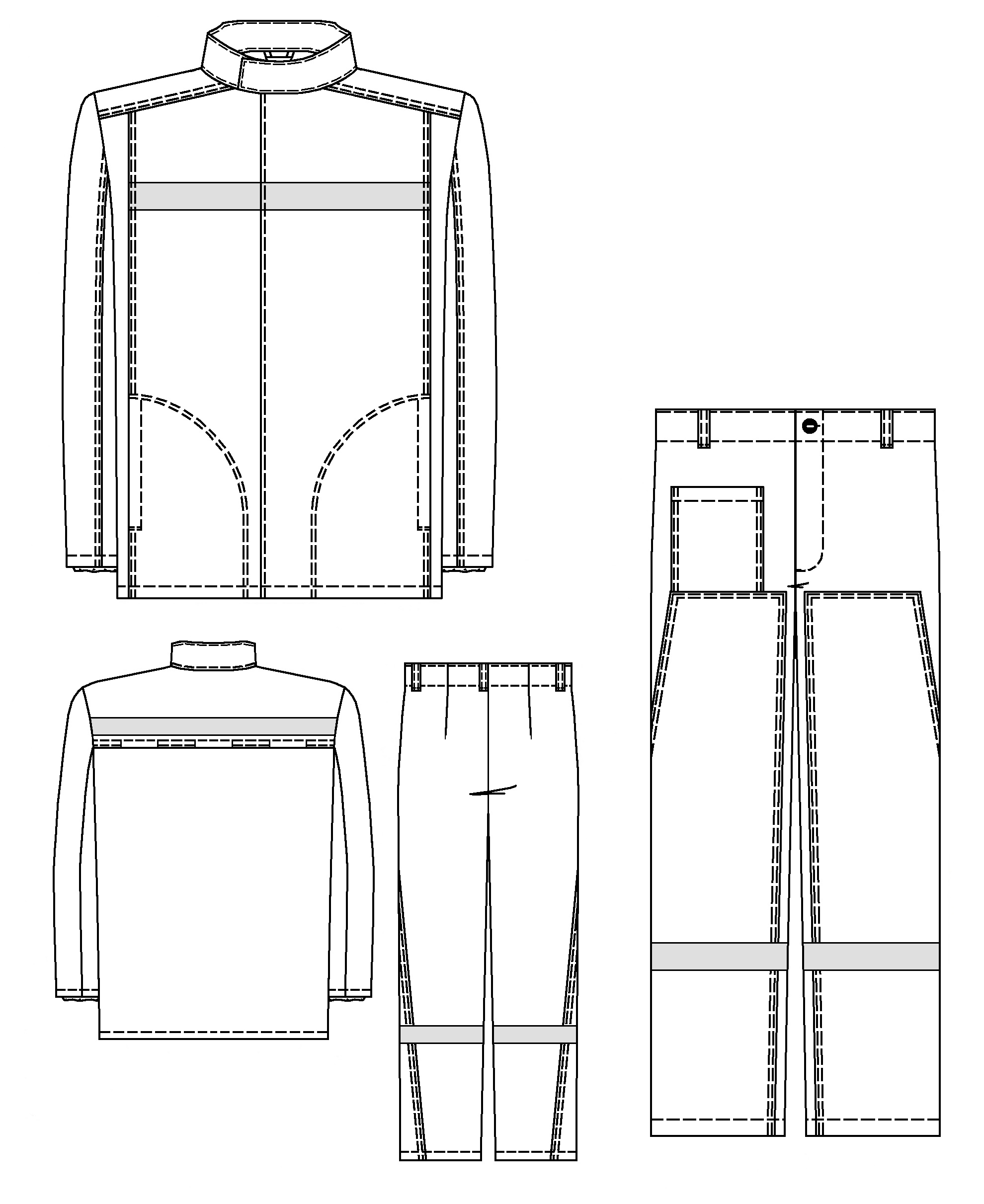 Материал основы: ткань хлопчатобумажная с огнестойкой отделкой, 350 г/м².