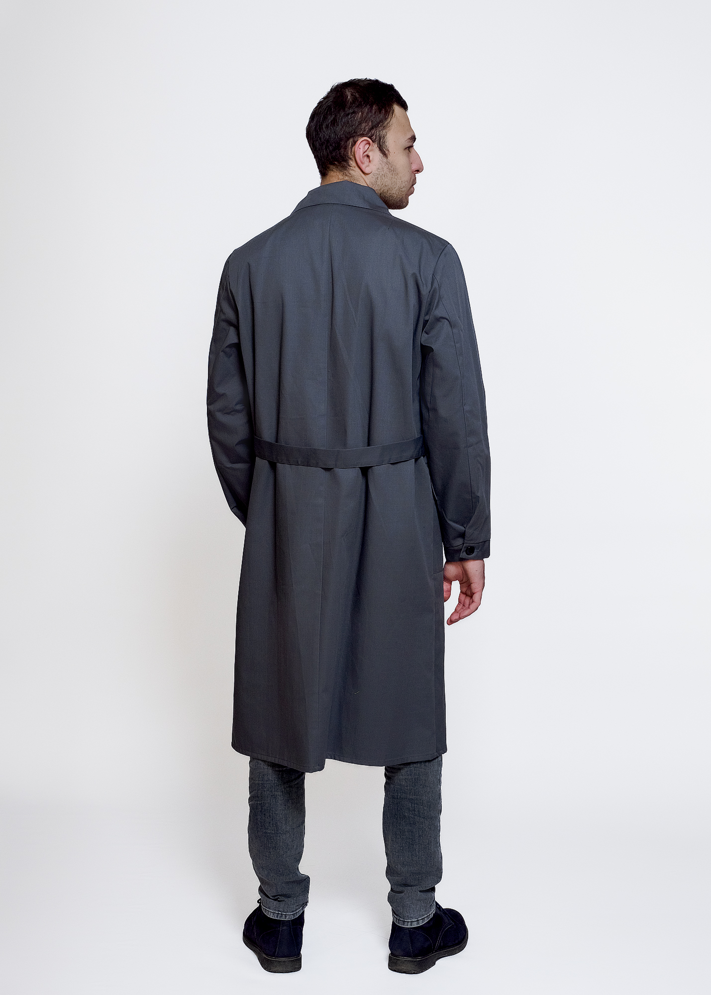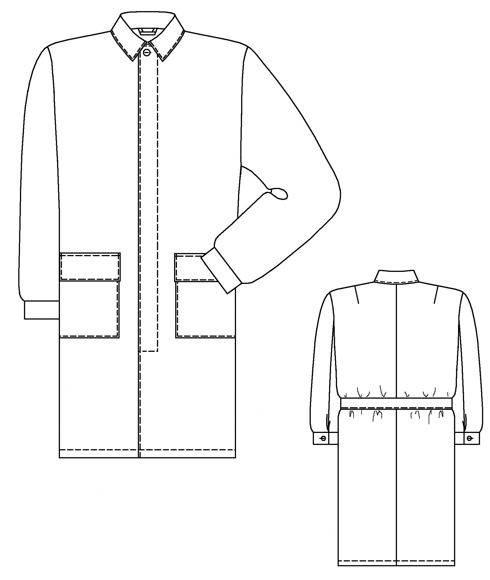 Спинка со средним швом, с плечевой вытачкой. Прилегание халата в области