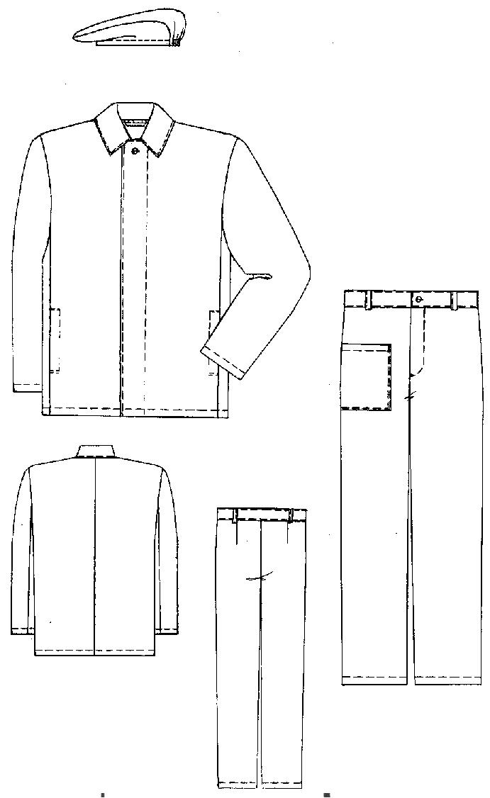 - Костюм состоит из куртки, брюк и берета.