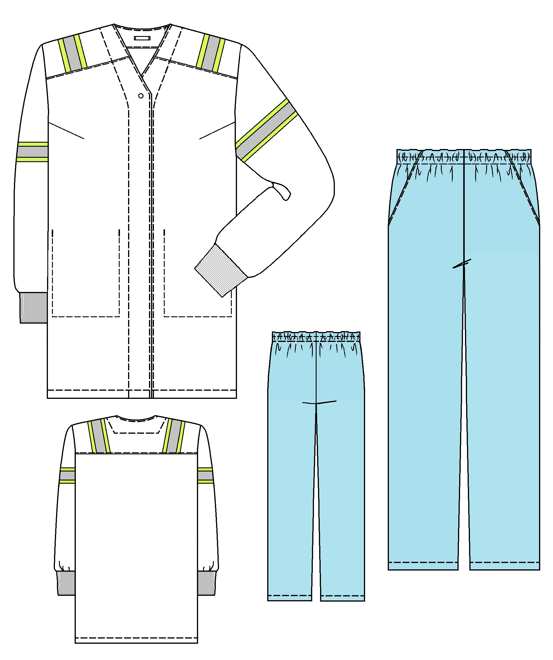 Комплект состоит из куртки и брюк.