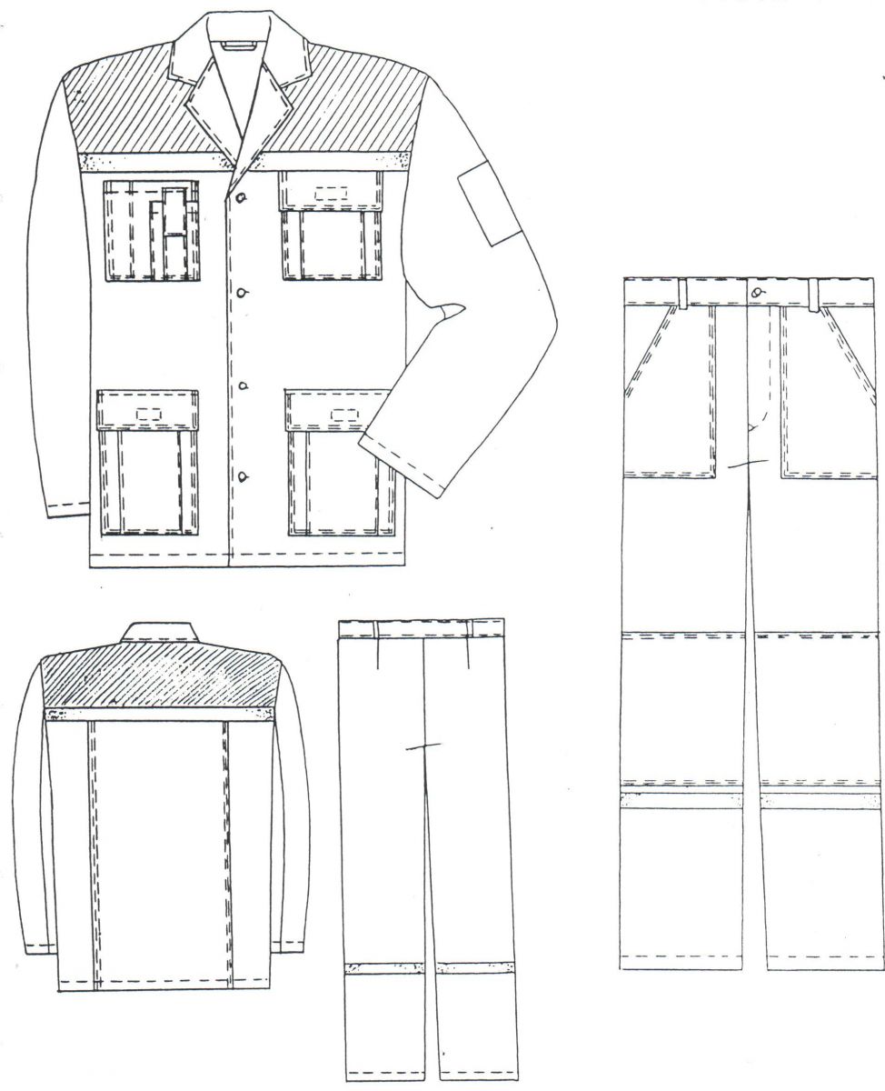 Костюм состоит из куртки и брюк.