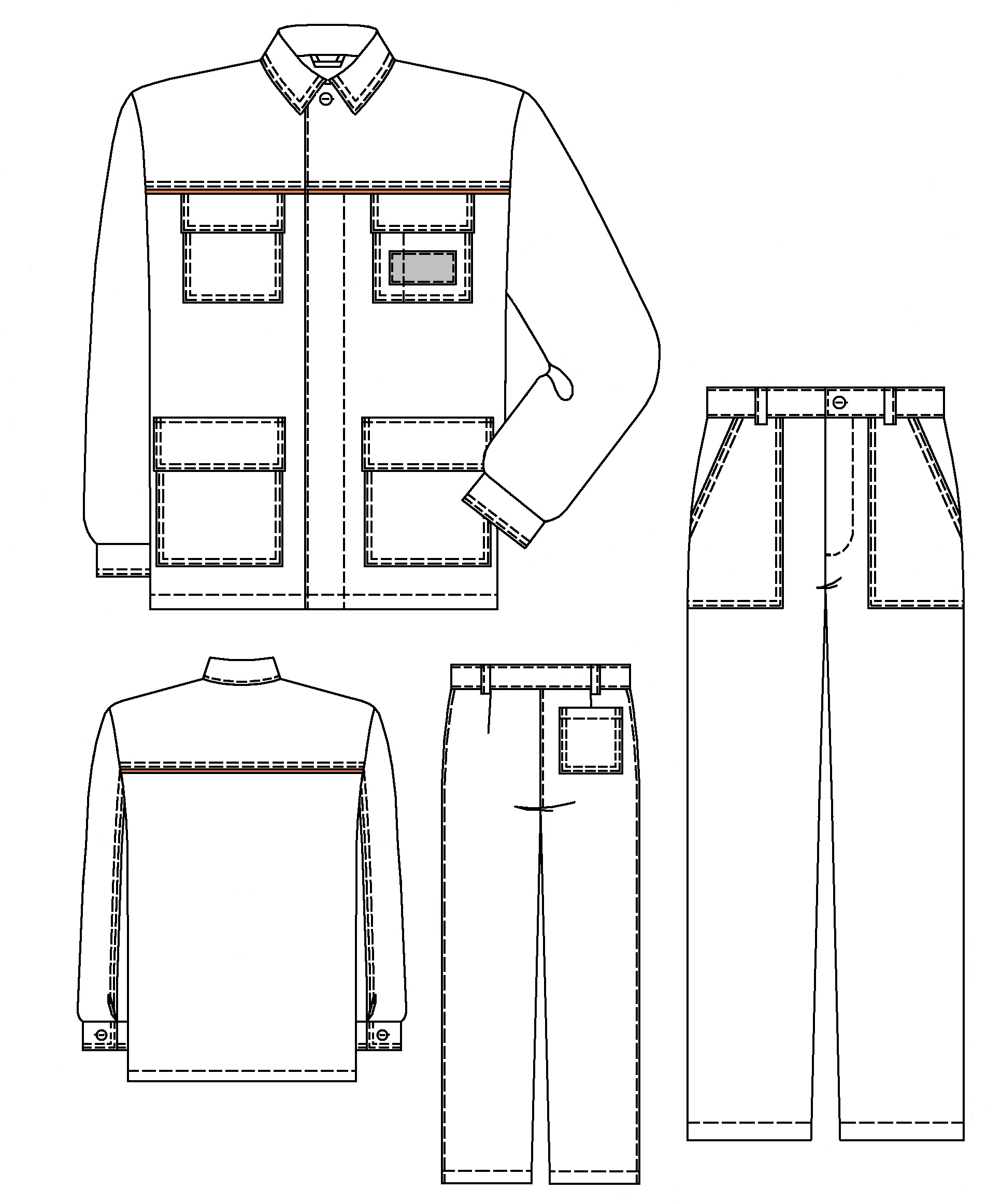 Полочки с кокетками, нагрудными и боковыми накладными карманами.