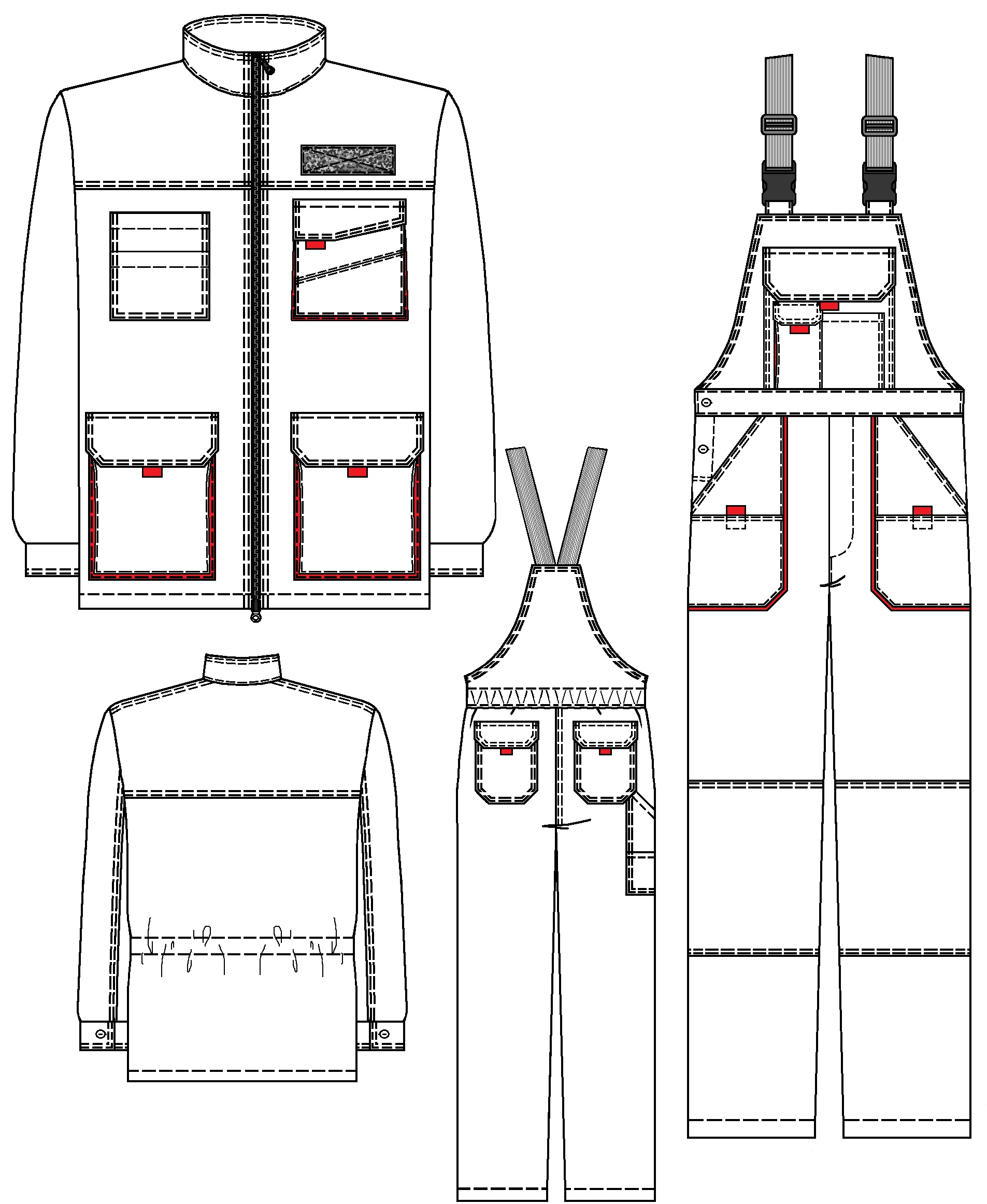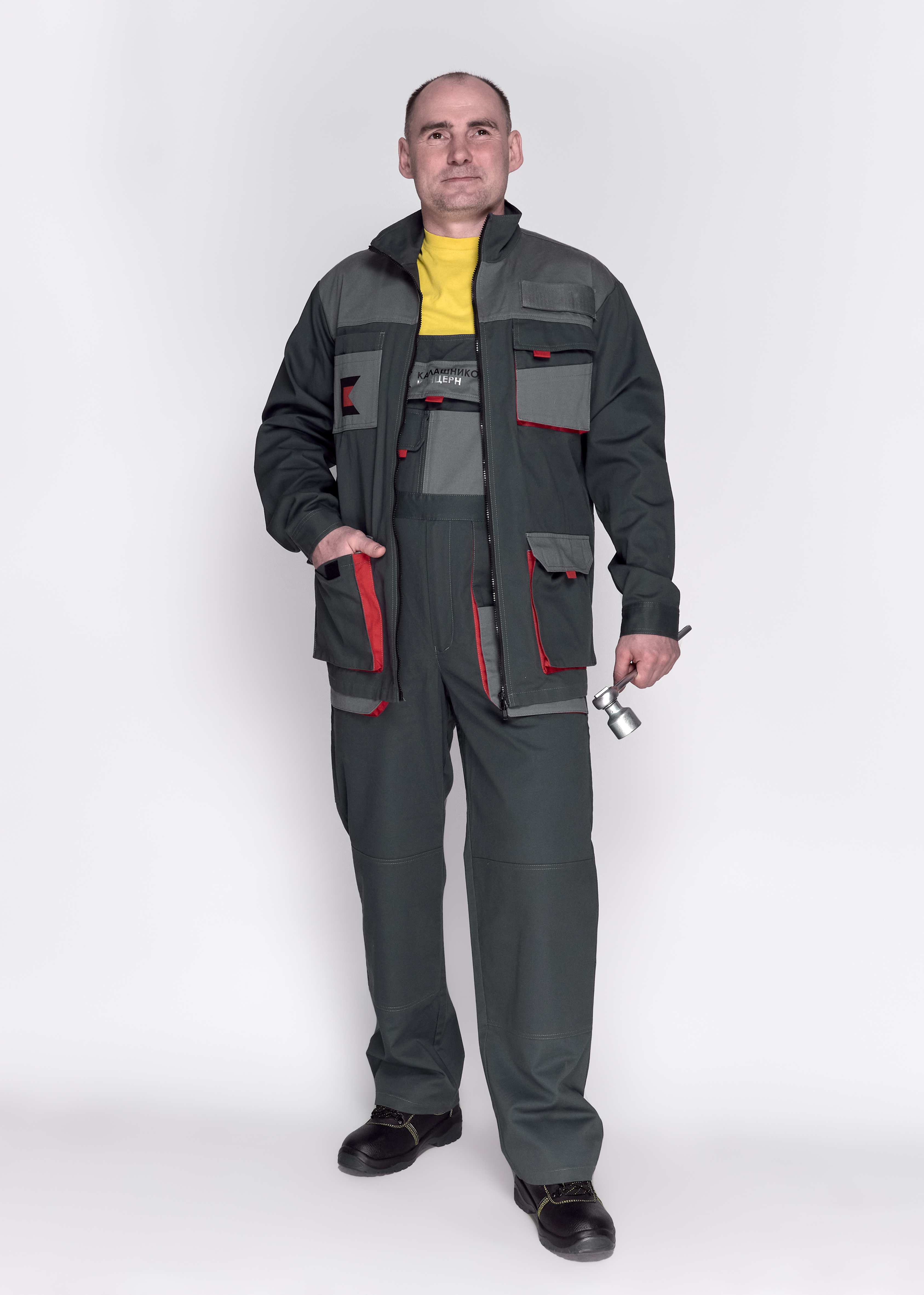 Костюм мужской летний состоит из куртки и полукомбинезона.