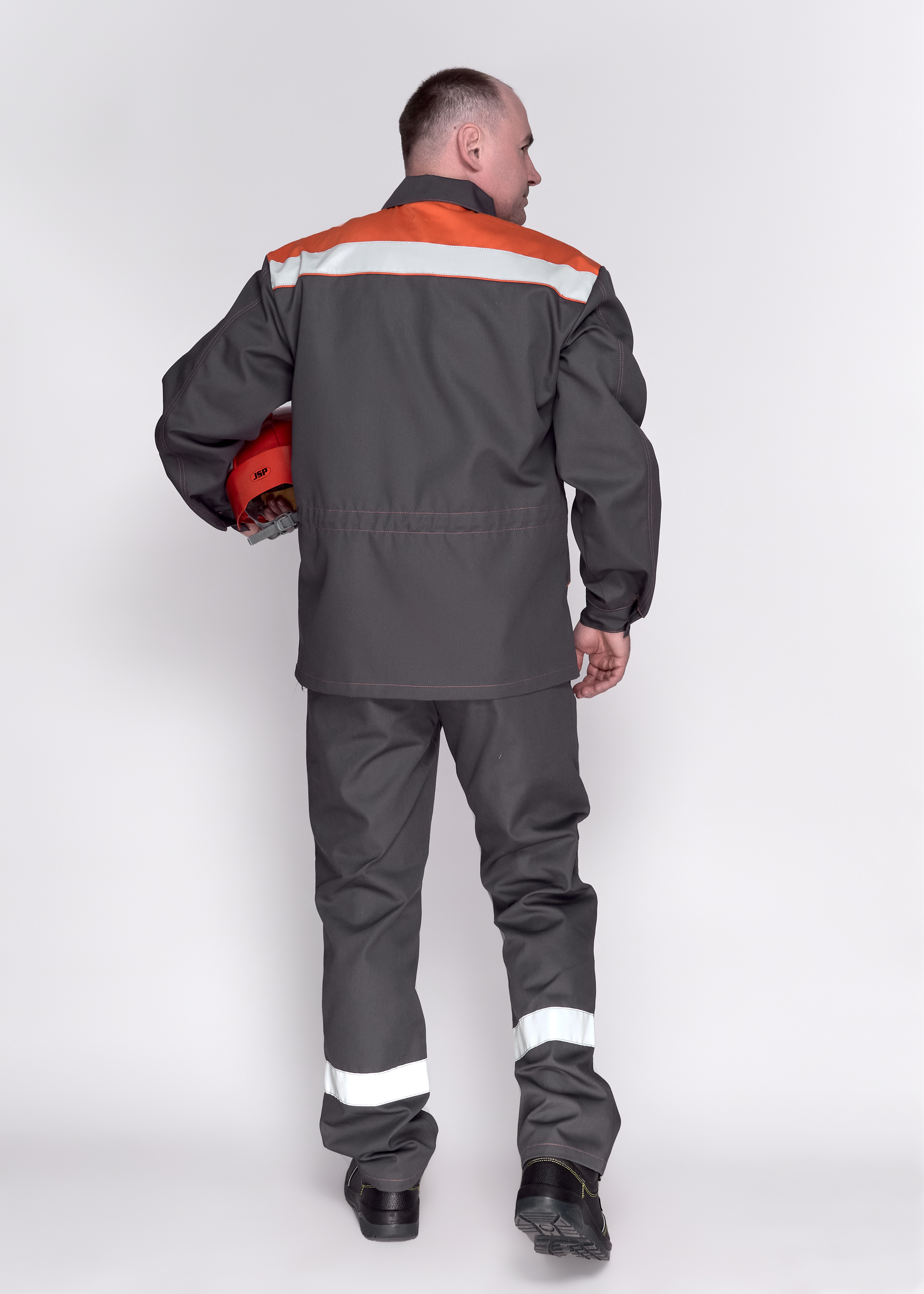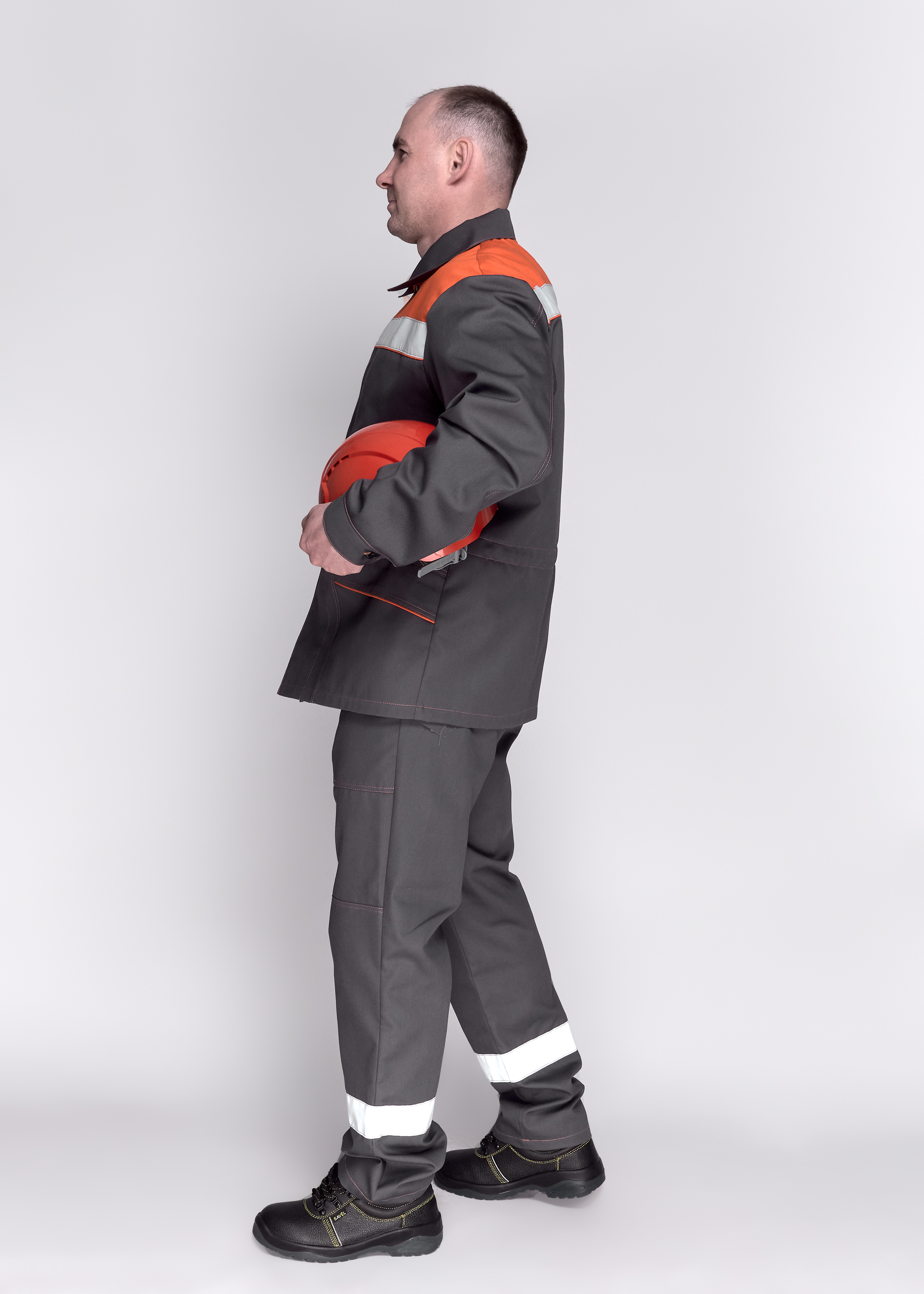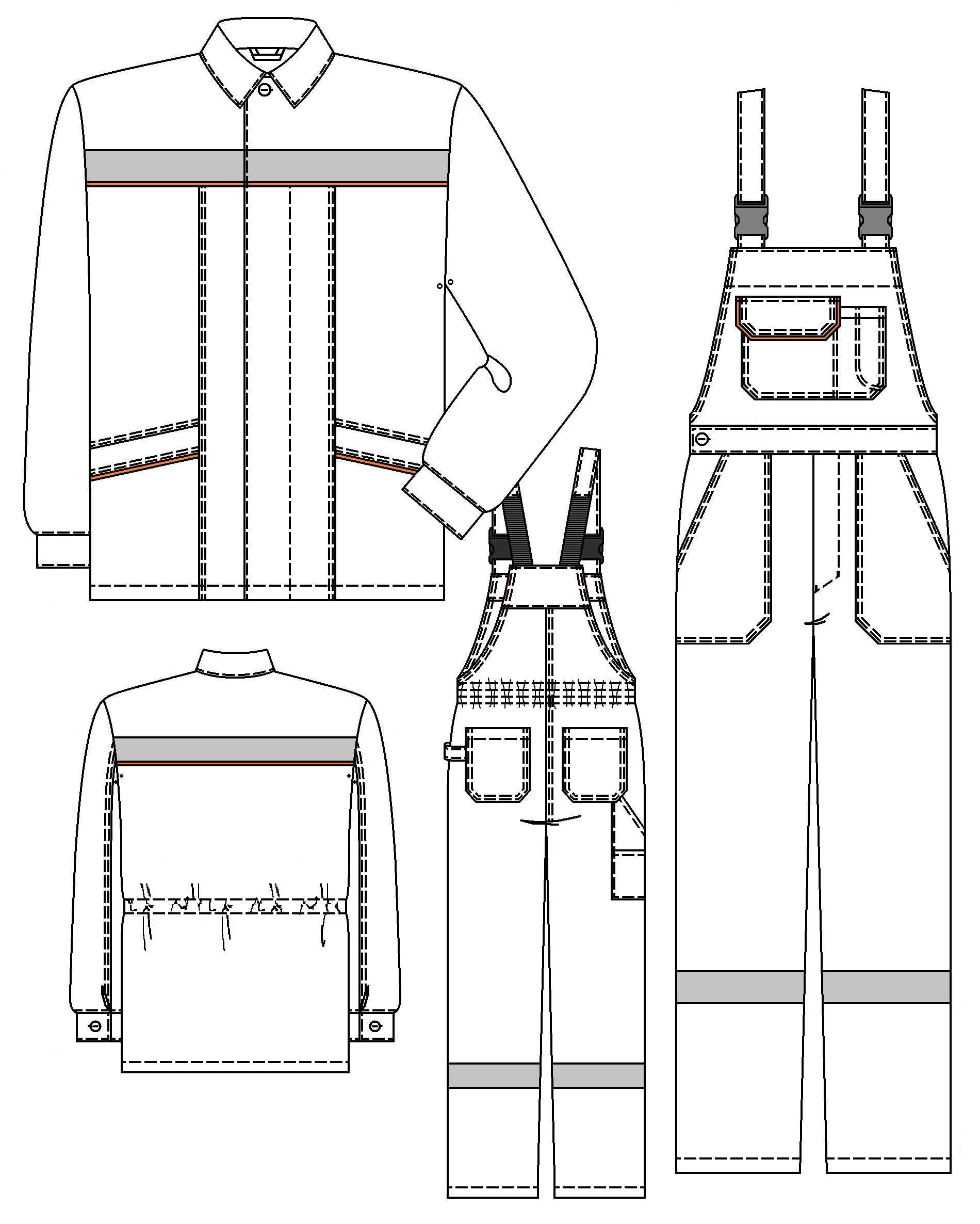 Костюм мужской летний состоит из куртки и полукомбинезона.