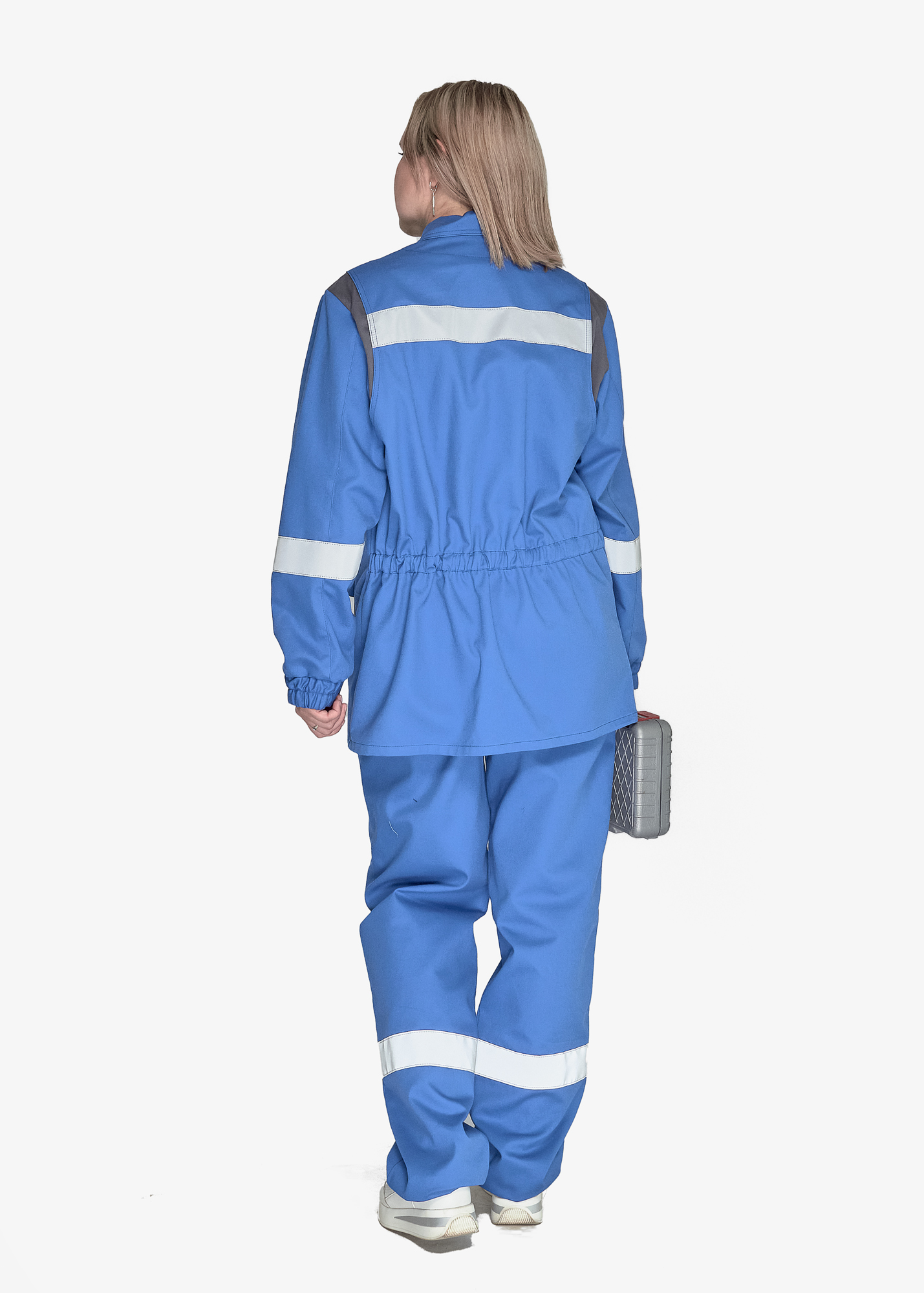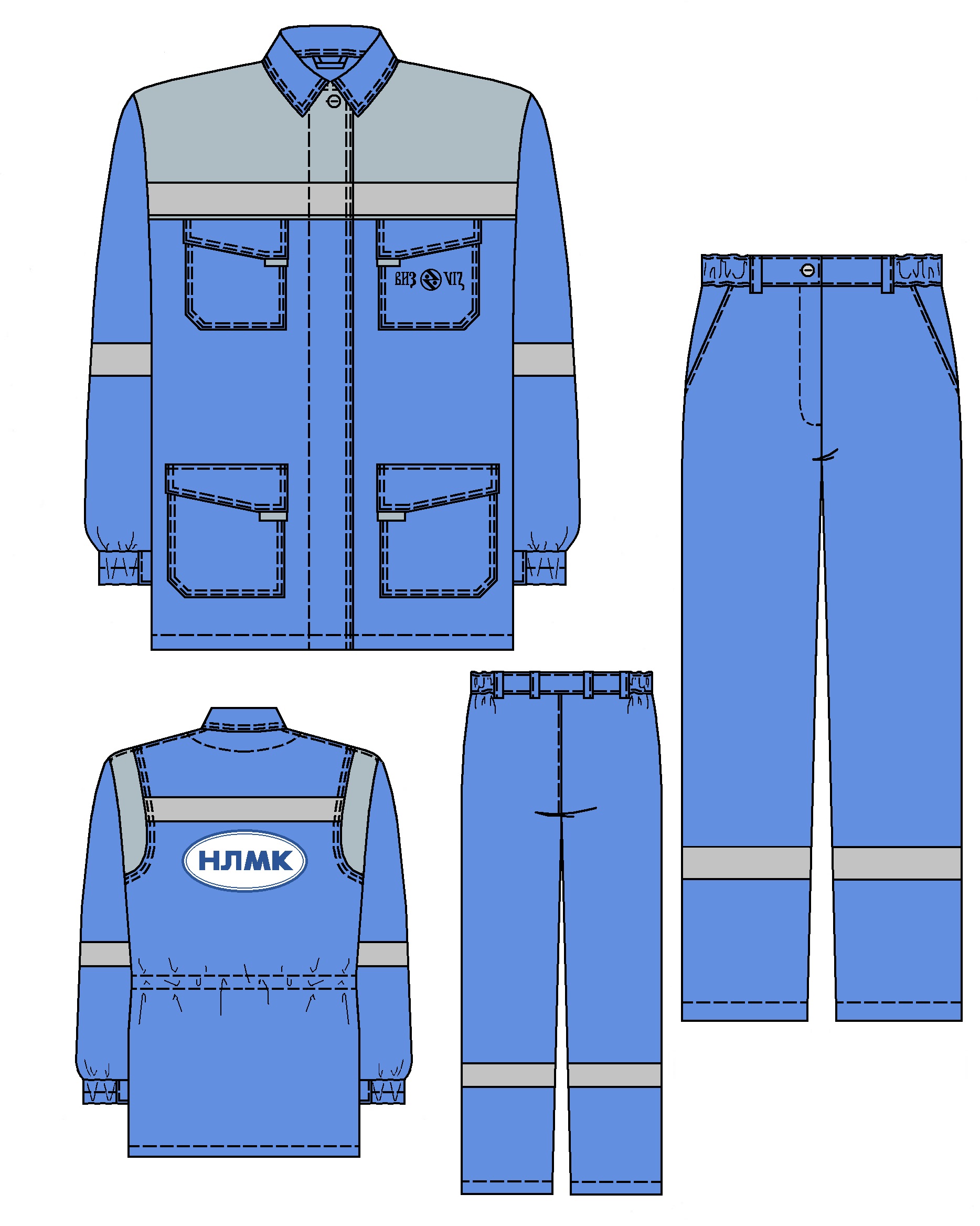 Костюм состоит из куртки и брюк.