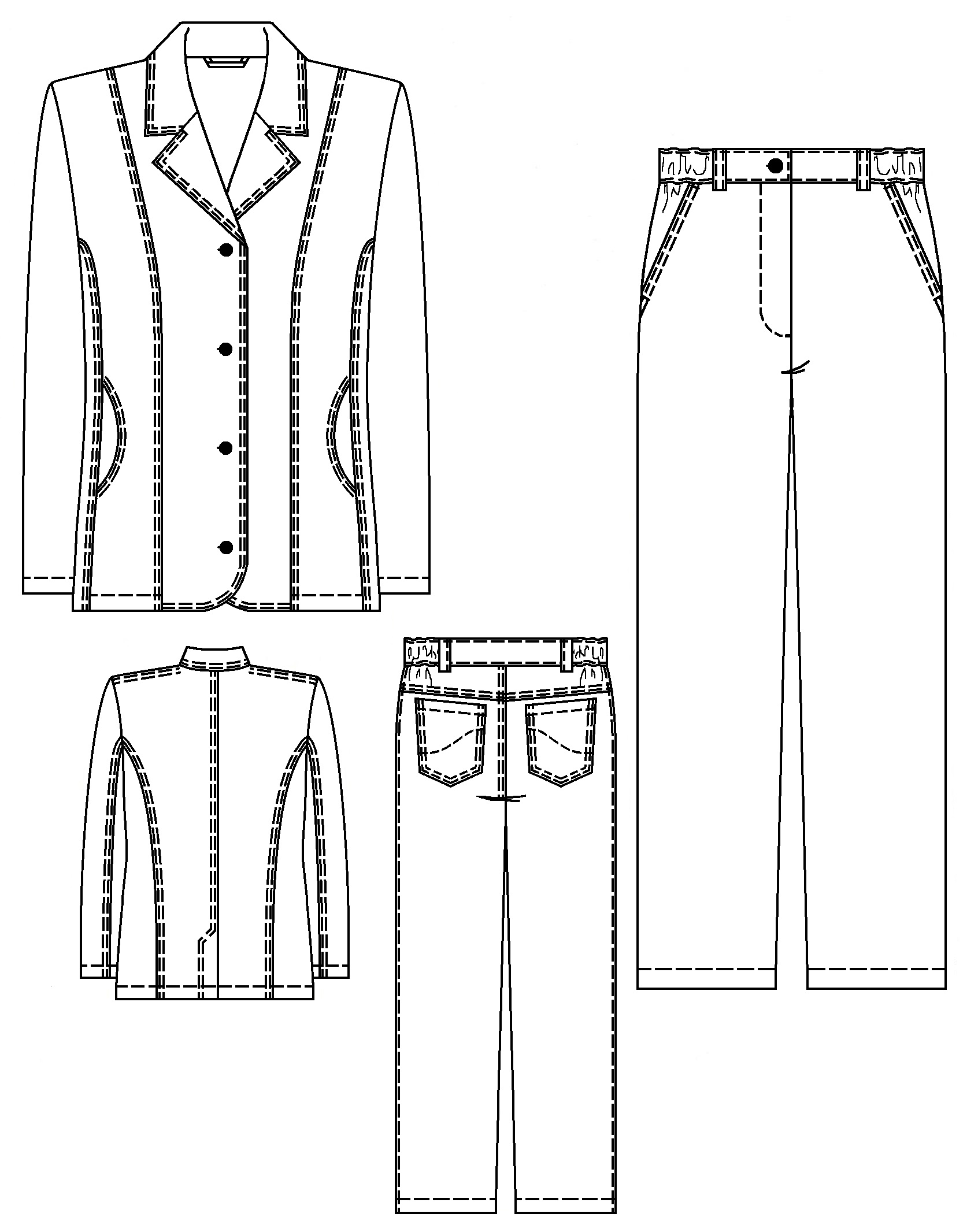Задние половинки с кокетками, накладными карманами.