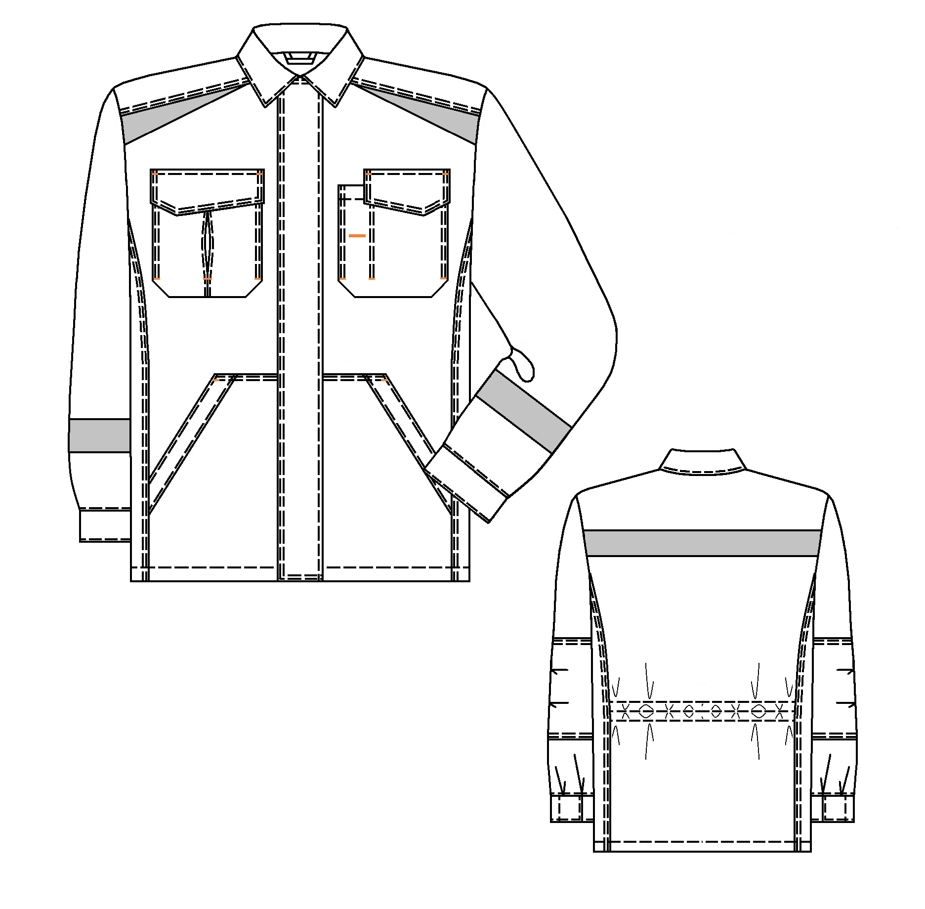 Накладные нагрудные и боковые карманы.