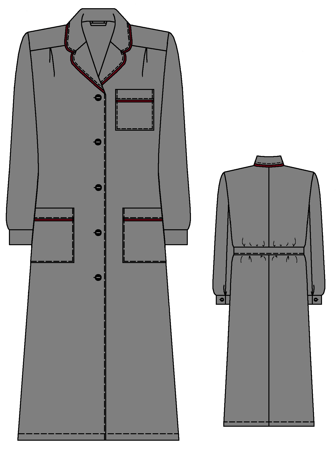 По отлету воротника, по краю лацканов и обтачек карманов проложен кант из отделочной ткани.