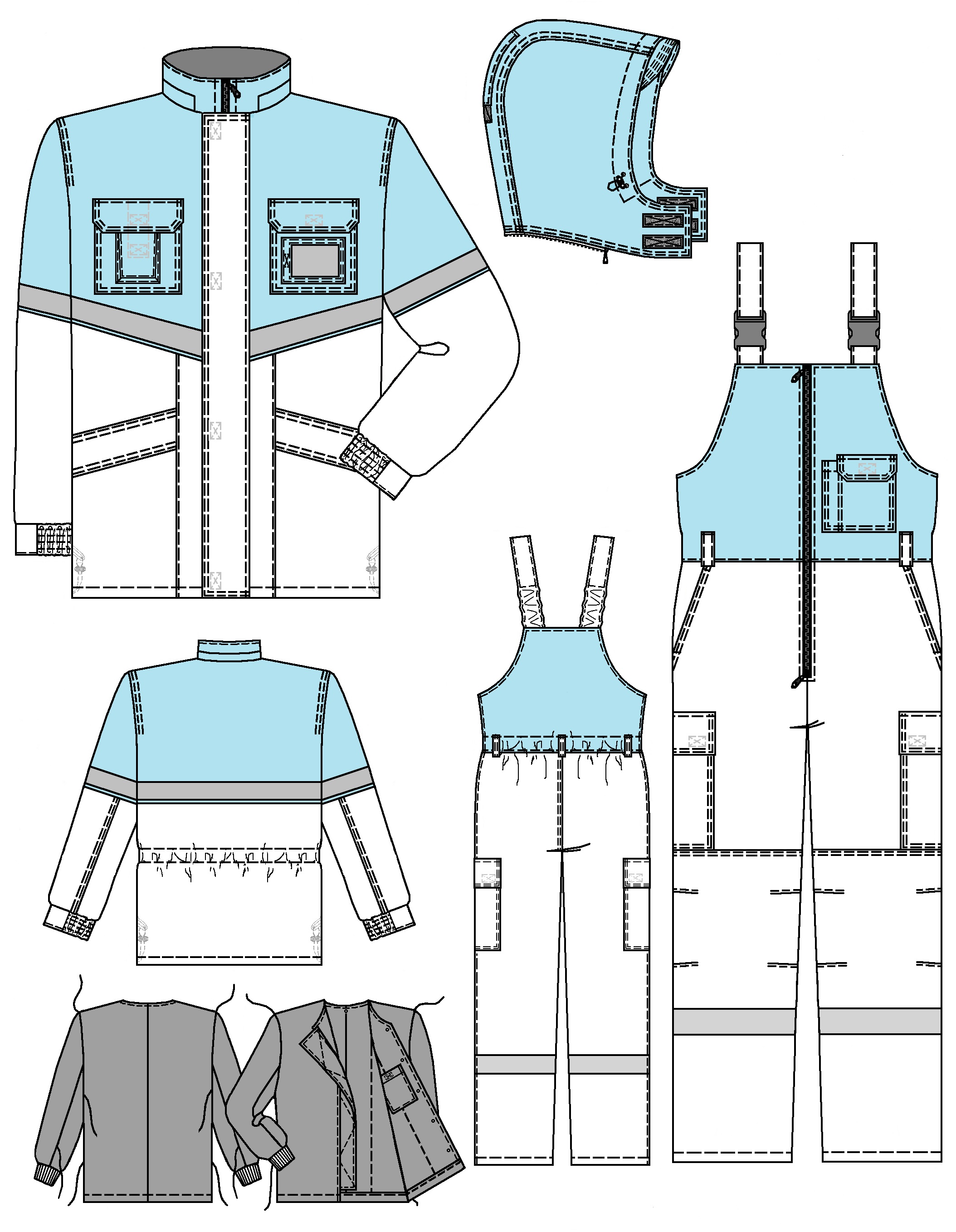 Утеплитель:100%ПЭ, 150г/м² (куртка – 3 слоя, полукомбинезон – 2слоя) + спанбонд.