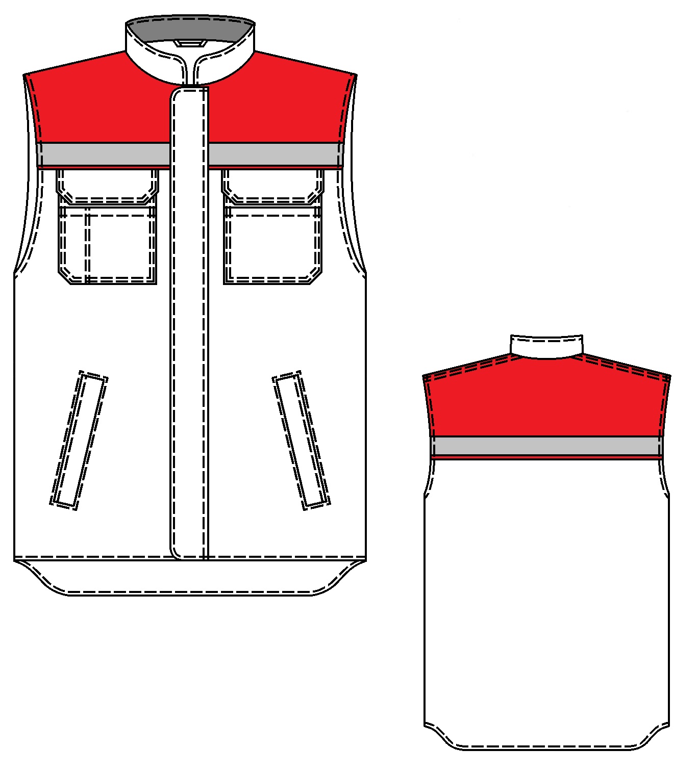 Полочки с кокетками, с нагрудными накладными двойными карманами с клапанами на контактной