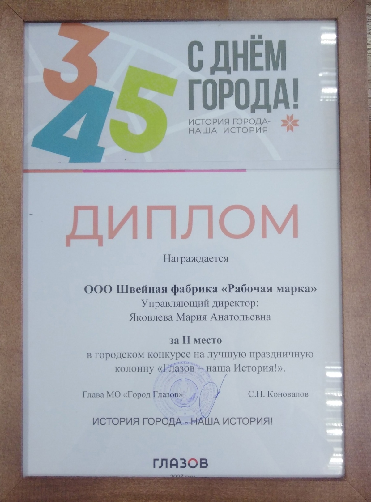 В субботу 10 июня город Глазов «отметил» свой юбилейный 345-ый день рождения! И по ежегодной традиции Швейная фабрика «Рабочая марка» приняла участие в карнавальном шествии по случаю праздника.